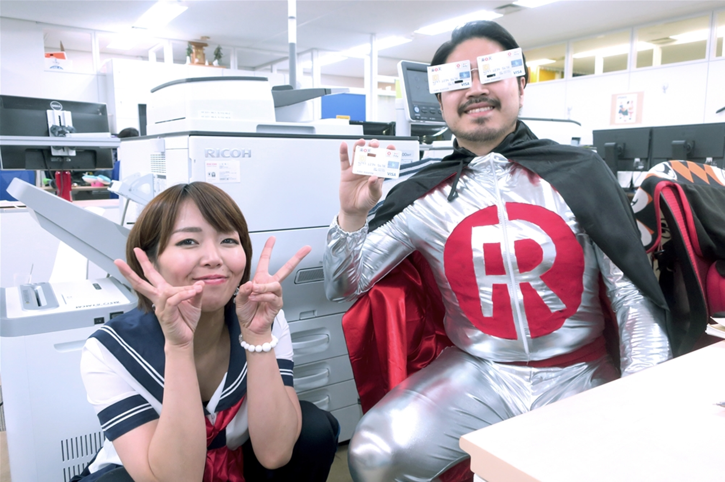 お互いキャラを活かしたか、セーラー服と楽天カードマン。あざとい!