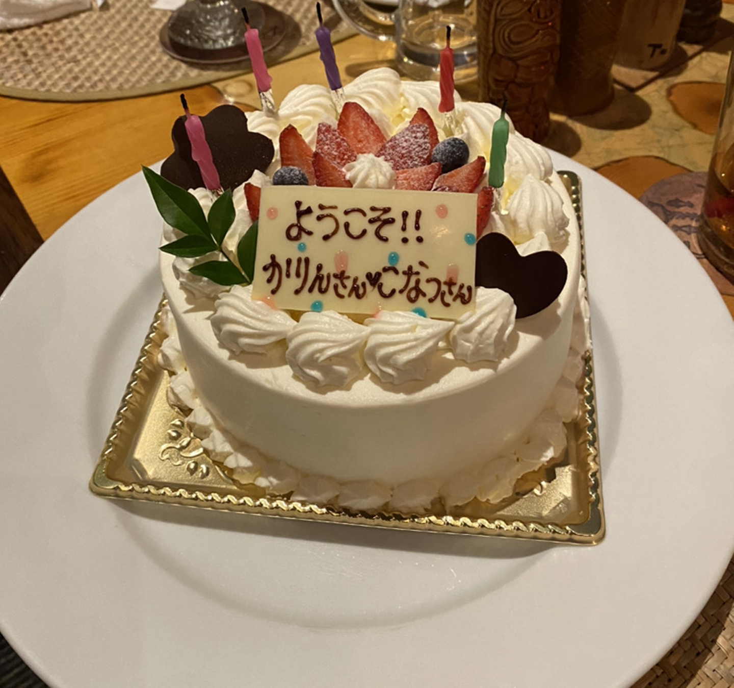 そして食事も落ち着いてきた頃、サプライズで準備していただいていた歓迎ケーキの登場🎂
