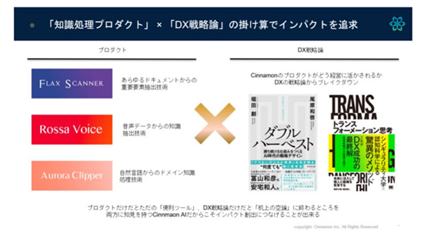 シナモンに転職したことで価値観も大きく変わりましたが、最初のきっかけは好奇心でした。シナモンの理念は書籍『ダブル・ハーベスト 勝ち続ける仕組みをつくるAI時代の戦略デザイン[2] 』(ダイヤモンド社)にもまとめられているので興味のある方はぜひ読んでみてください。この考え方を軸に、AI時代で戦略立案スキル、お客様の声を反映するスキルを獲得できる会社です。