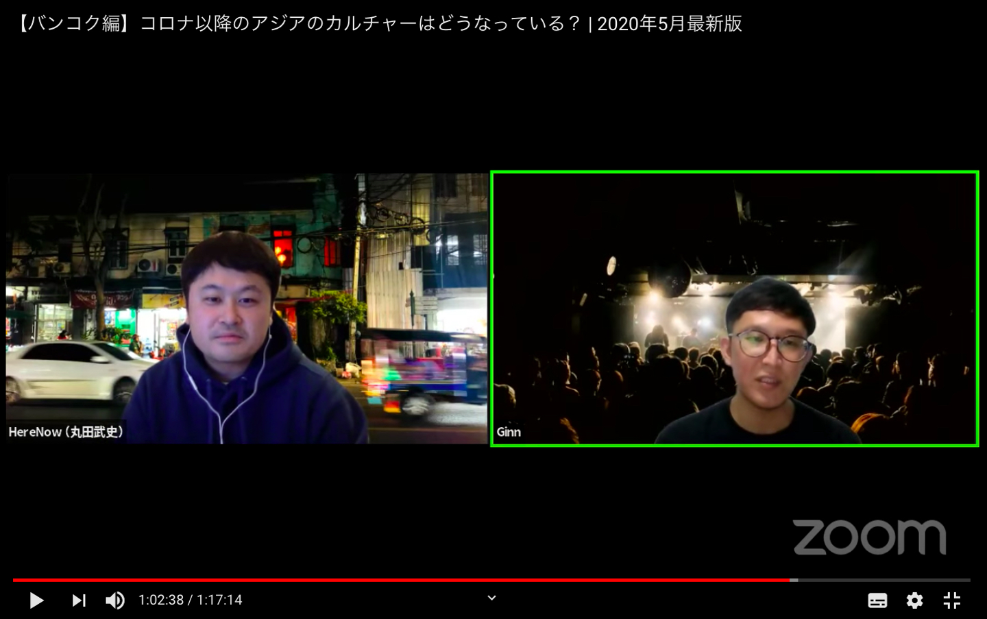Ginnさん(バンコク / Faustusドラマー / dessin the world主宰)と「HereNow」プロデューサーのオンライン対談『コロナ以降のアジアはどうなっている? バンコク編 Produced by HereNow』