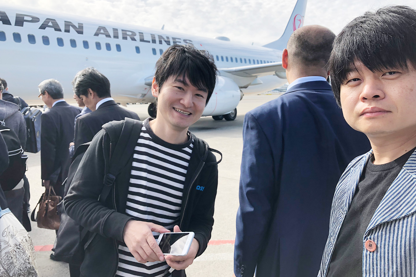 はじめて島根に行くため、心をおどらせる佐々木と永田。