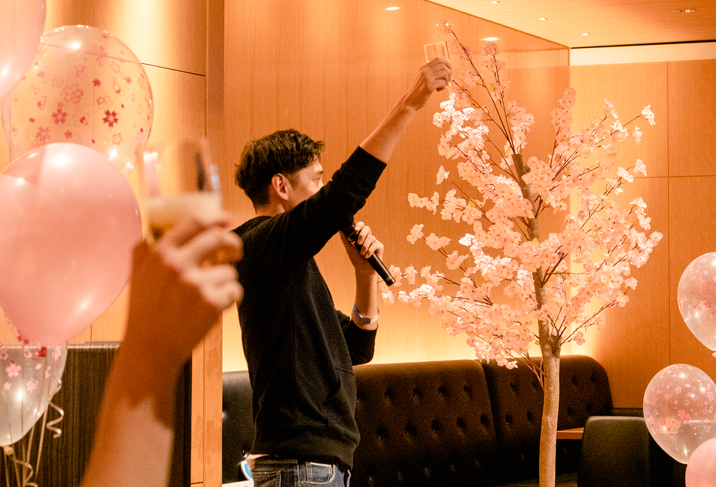 会場には満開の桜が散りばめられており、お花見気分でみんなでワイワイ楽しみました〜。