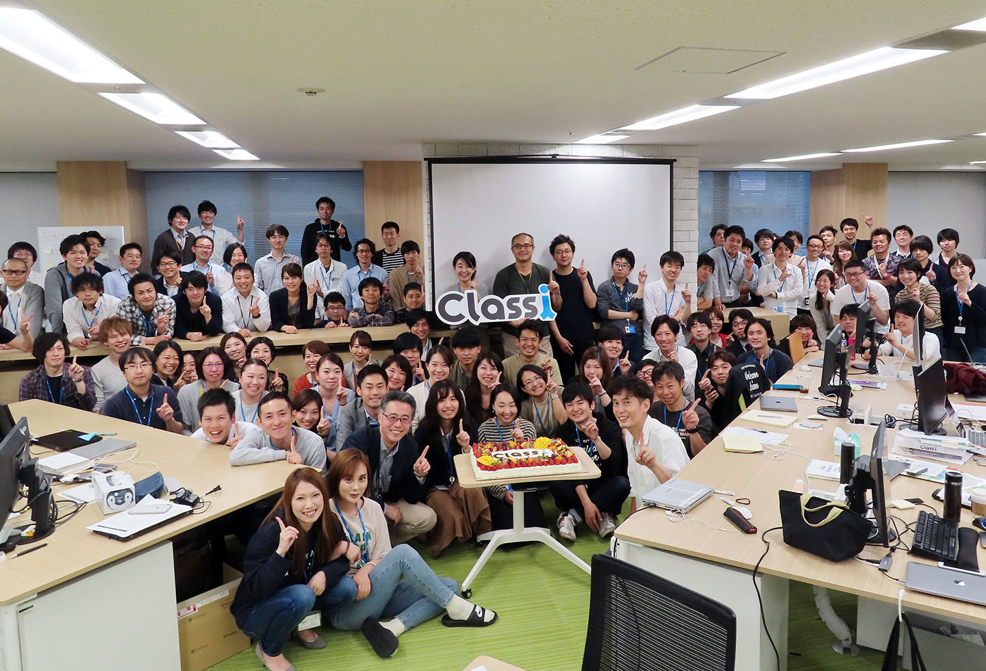 5月度の全社会で利用者数100万人突破が報告され、Classiメンバー一同でお祝いをしました。