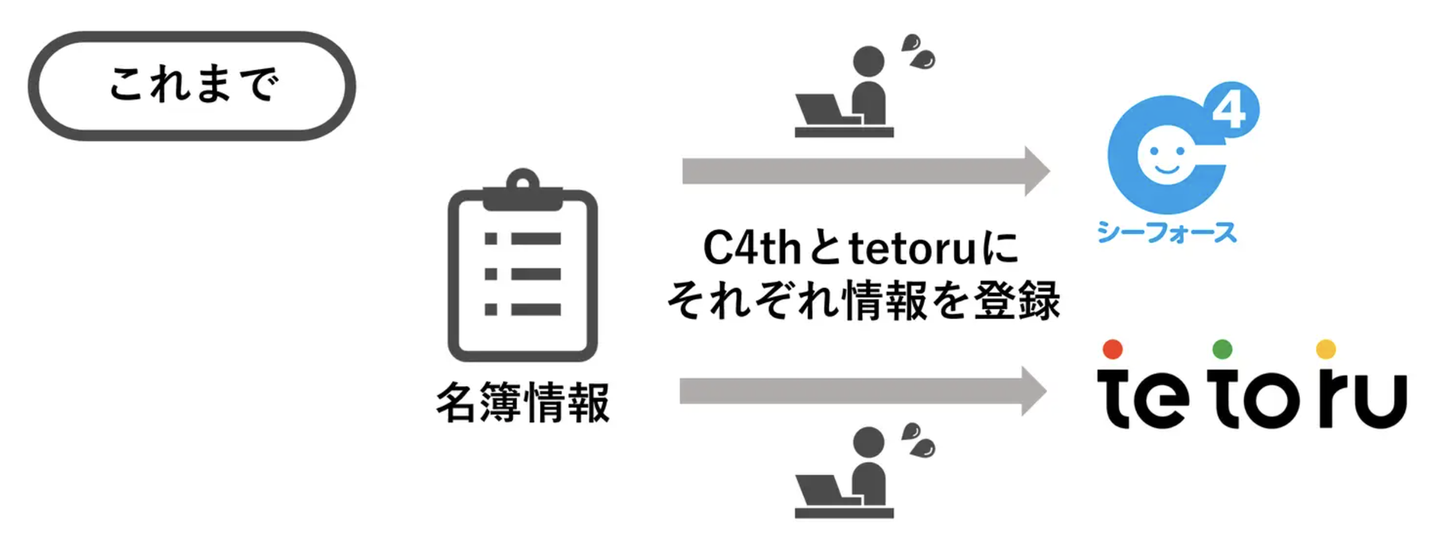 2023年8月、株式会社EDUCOM(以下EDUCOM)と連携し、統合型校務支援システム(※1)「EDUCOMマネージャーC4th(以下C4th)」の児童生徒・教職員名簿情報を、弊社が開発・運営する小中学校向け保護者連絡サービス「tetoru」に連携する機能をリリースしました。