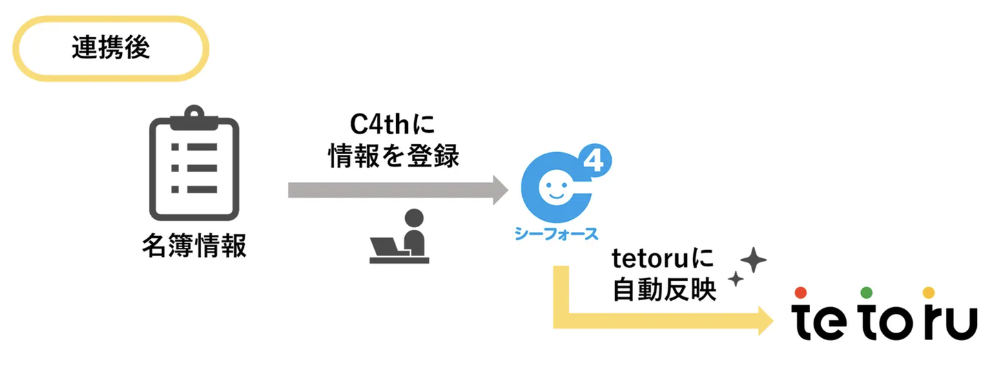 - 新入生の入学時、C4thへの名簿情報入力のみでtetoruへの名簿情報登録作業も完了できます。