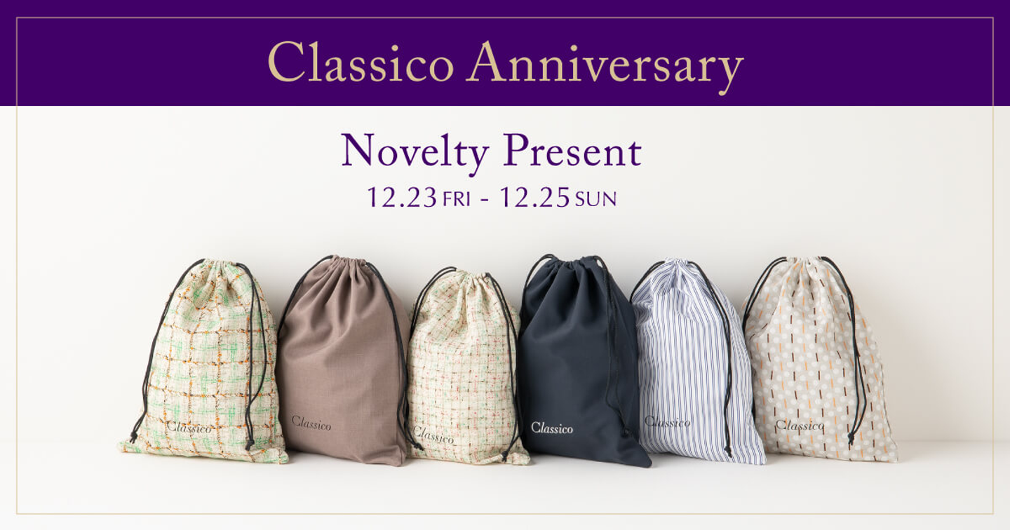 初めての試みとして、2022年12月、クラシコの15回目のお誕生日(創業日)に、数量限定で残布をリユースしオリジナル巾着を作ってお客さまにプレゼントしたところ、たくさんの方に喜んでいただけました。