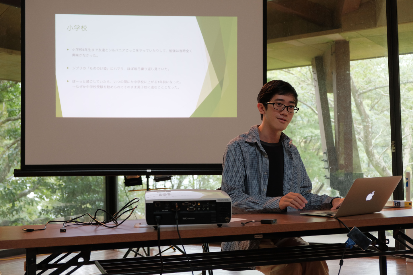 一人も遅刻することなく到着。研修スタートです。まずは合宿恒例、新メンバーによる自分史発表。今までの自分を振り返り、どんな道を歩んできたのか、これからどんな道を歩みたいか、を発表してもらいます。