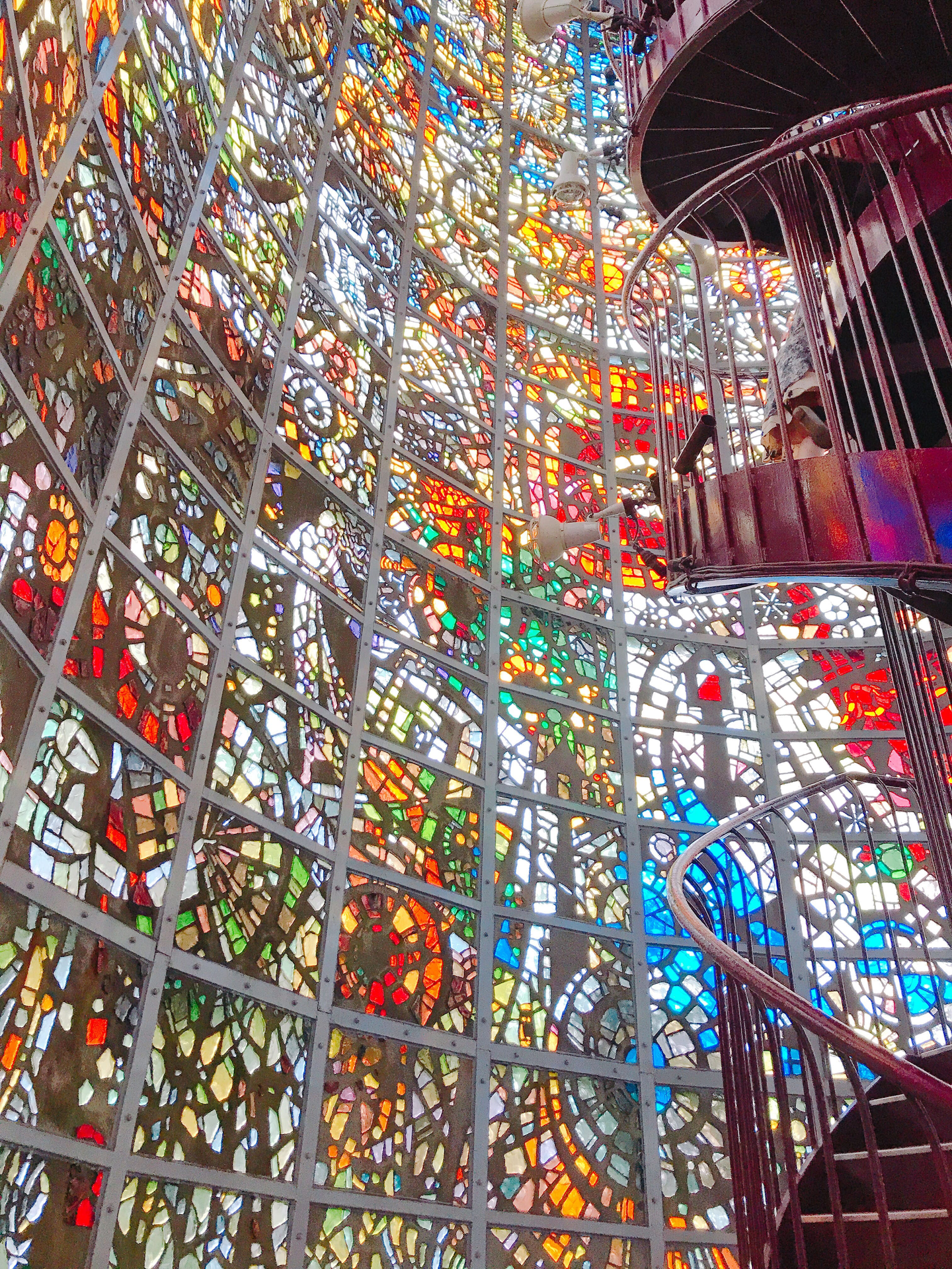 ユニークな作品がたくさんある中で、私一押しはこの「幸せをよぶシンフォニー彫刻」です。一面ステンドグラスの塔は圧巻でした!!