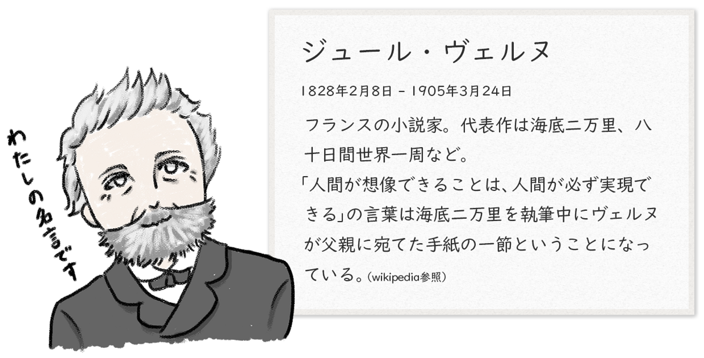 江戸時代なので、 先の言葉のジュール・ヴェルヌさんの生きていた時代よりずっと前です。 人間の哲学的な部分はずっと変わらないんだなと感じました。そして、国も関係ないんだなと。