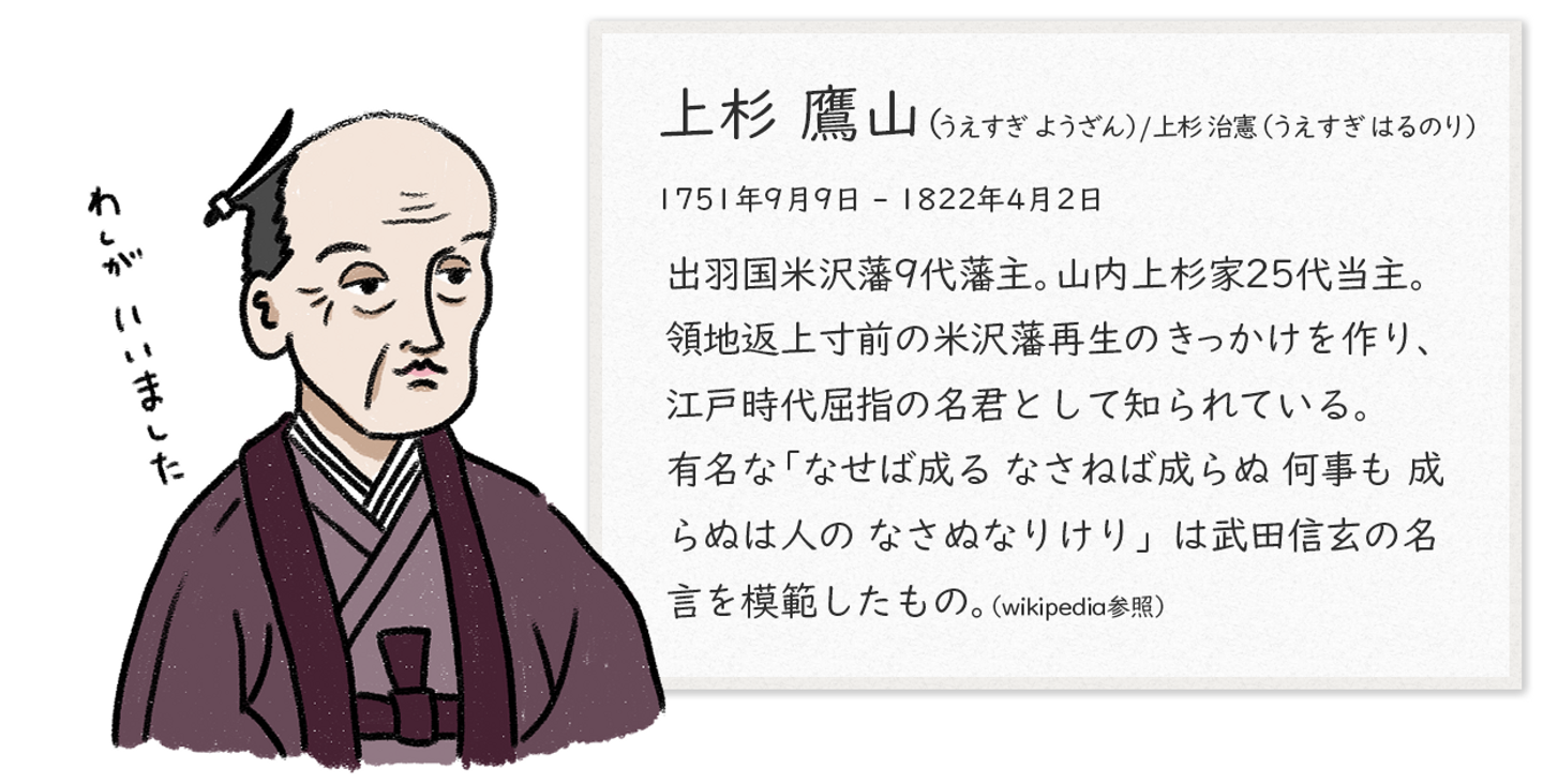 ↑調べたら上杉鷹山という江戸時代の米沢藩主の言葉でした。武田信玄の名言も有名ですね。
