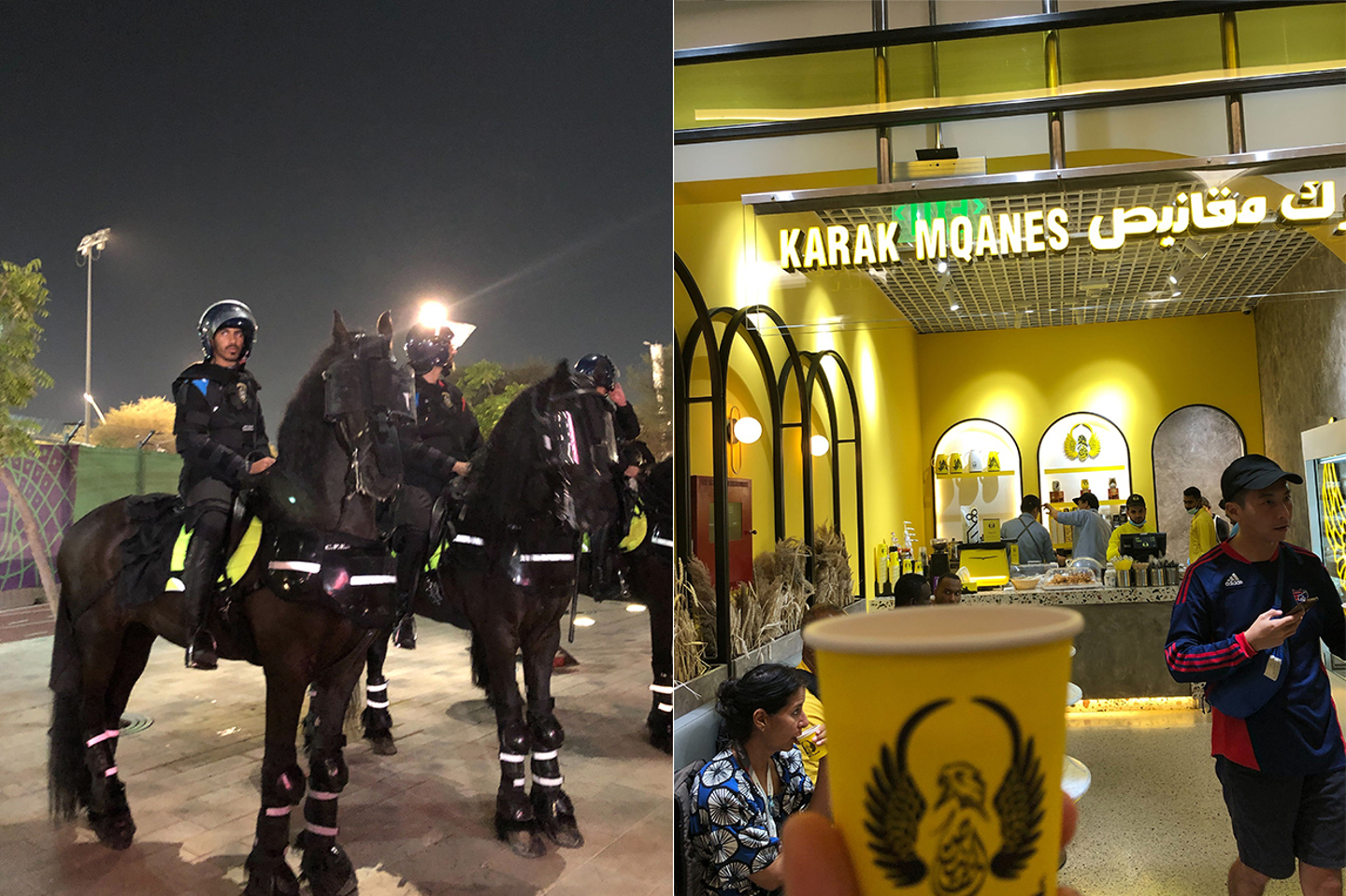 ↑左:警備に馬が使われてました。右:現地ではポピュラーなカラックティーは40円。コーヒーは800円します…