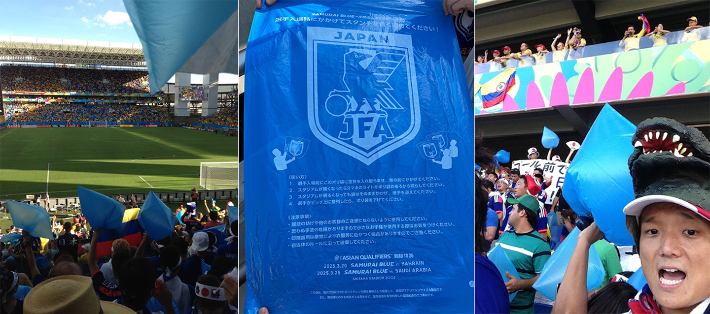 最終的には日本代表が、大事な最終予選の試合日に青いゴミ袋を配るという動きになりました。
