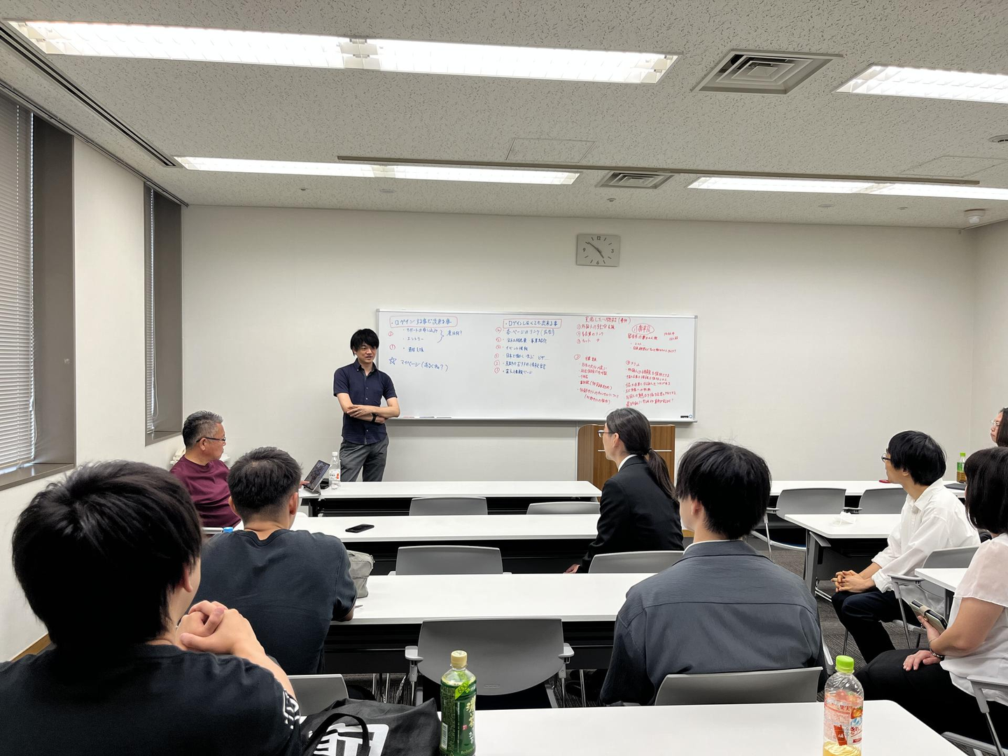今回は、社員たちの近況報告からスタートしました。普段はリモートでのやり取りが多いため、顔を合わせての情報共有はとても新鮮です。現場で得たリアルな体験談も共有しました。お互いに質問や意見を交換し合い、自然と笑顔がこぼれる場面もありました。