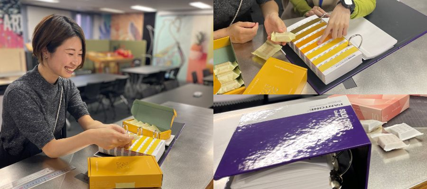 新商品がでるタイミングだと商品開発ミーティングに出て実際に試食し、味や見た目などの内容の共有がありパッケージにどう落とし込むか自分でイメージしていきます。