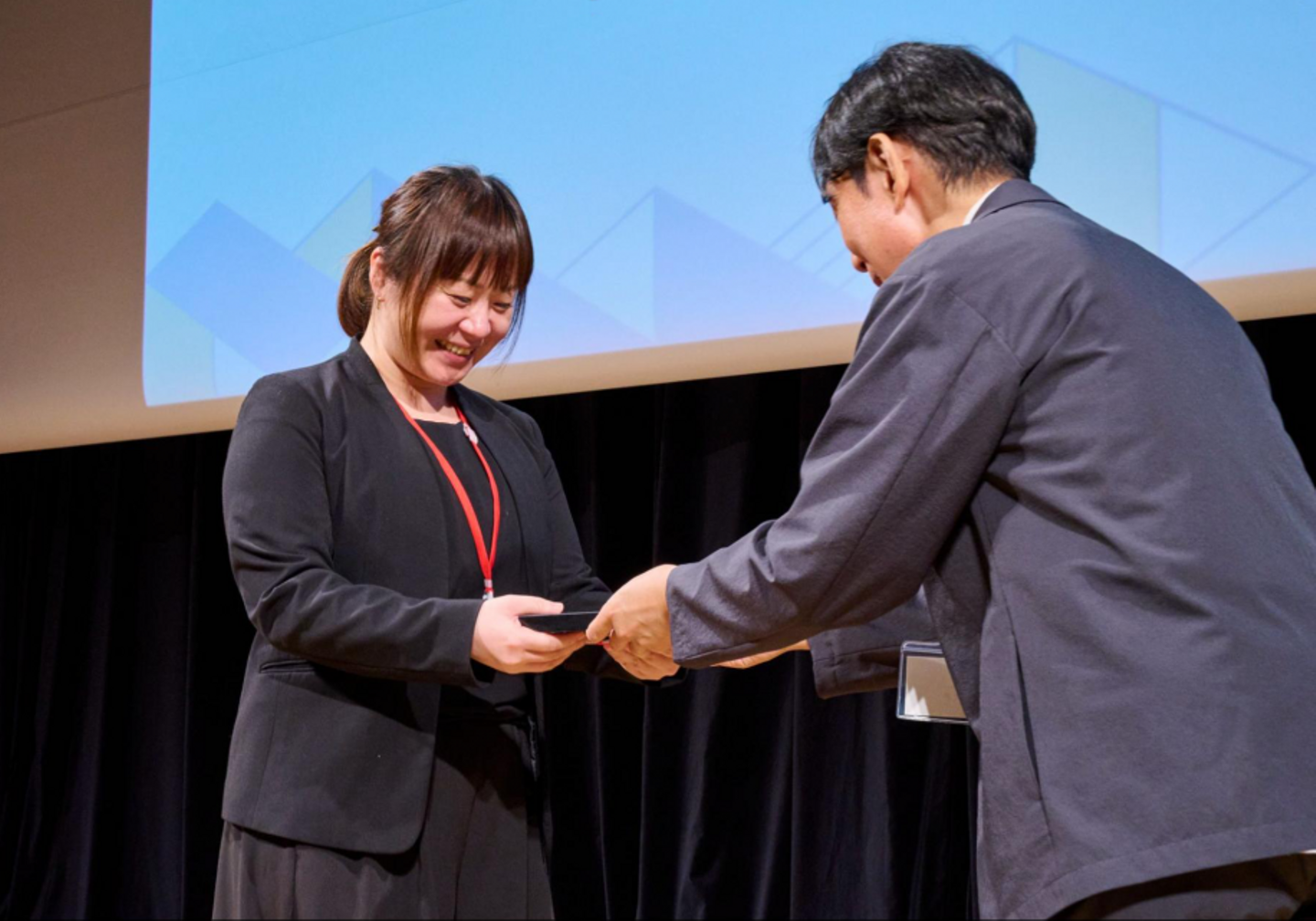 達成感に満ちた表情でそう語る池上さんは、キックオフの場で、どんなかたちでもよいから表彰の場に立ちたいと、強く願っていたそうです。その理由は「これだけのみなさんの前で、感謝の気持ちをお伝えできる機会ってなかなかないから」というもの。そして、立て直しを支えてくれた方たちに向けて、感謝の言葉が贈られました。中でも、池上さんの上長にあたるユニットリーダーとのエピソードは印象的でした。