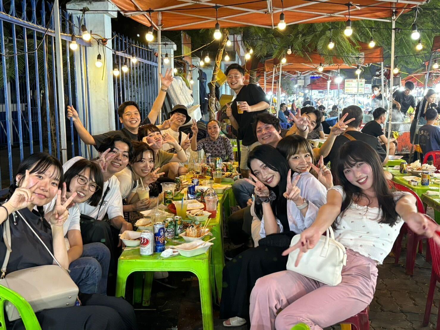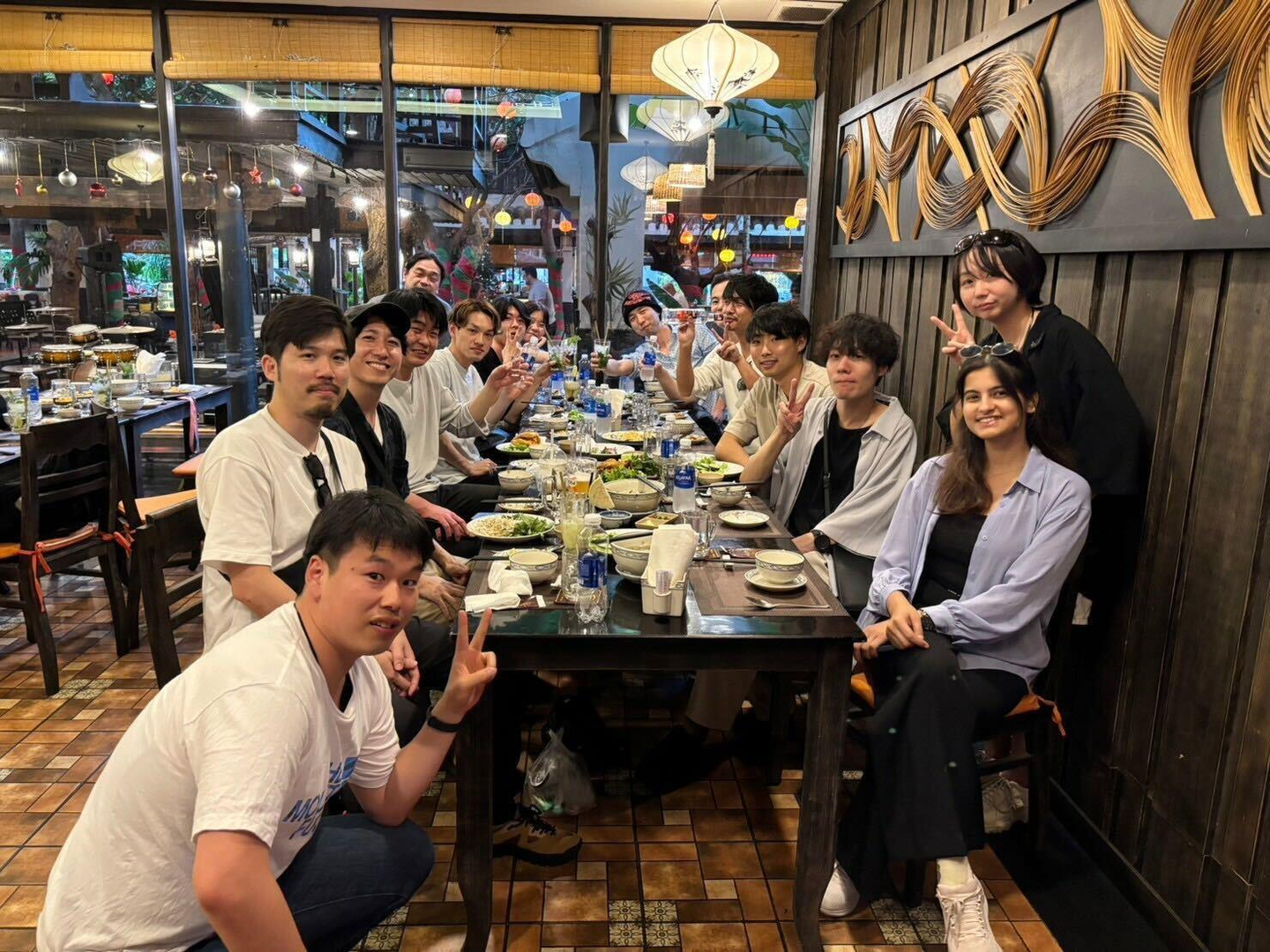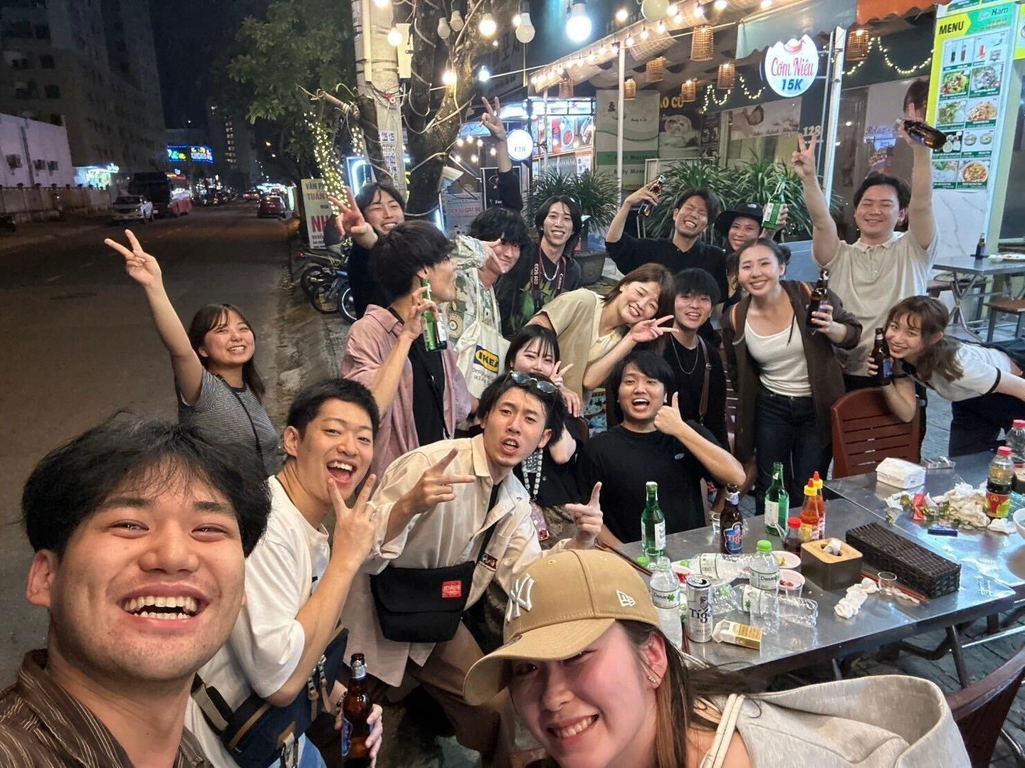 写真はホイアンのレストランでとった集合写真です。ホイアンは観光地ということもあり人が多かったですが活気があり、なによりもランタンの明かりがとても綺麗でした!面白いなと思ったのは、ランタンを背景に写真を撮られる人が多かったのか撮影にも料金を取るお店があったことです。稼ぎ方は様々あるなと勉強になりました。