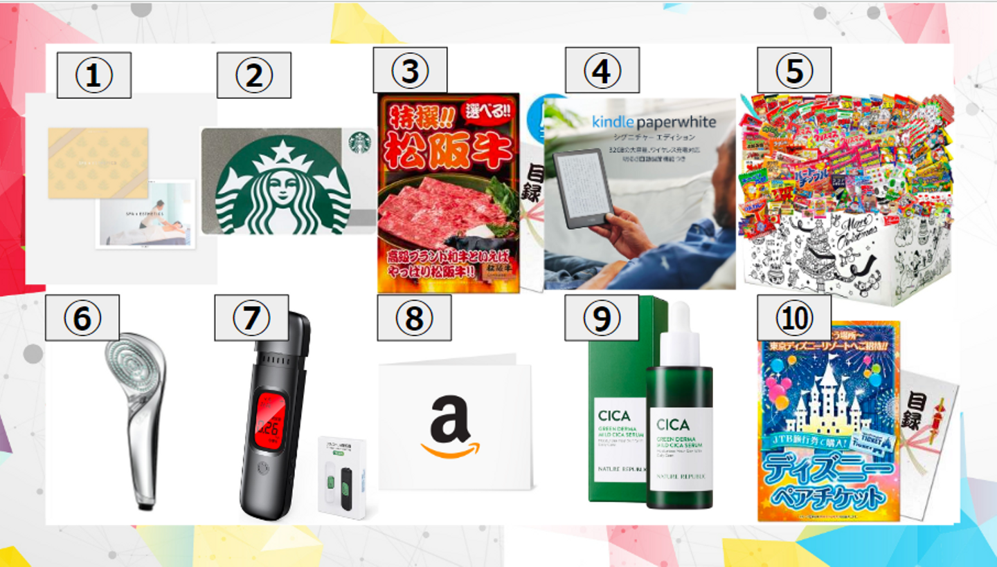 お菓子セットから、ディズニーのペアチケット、