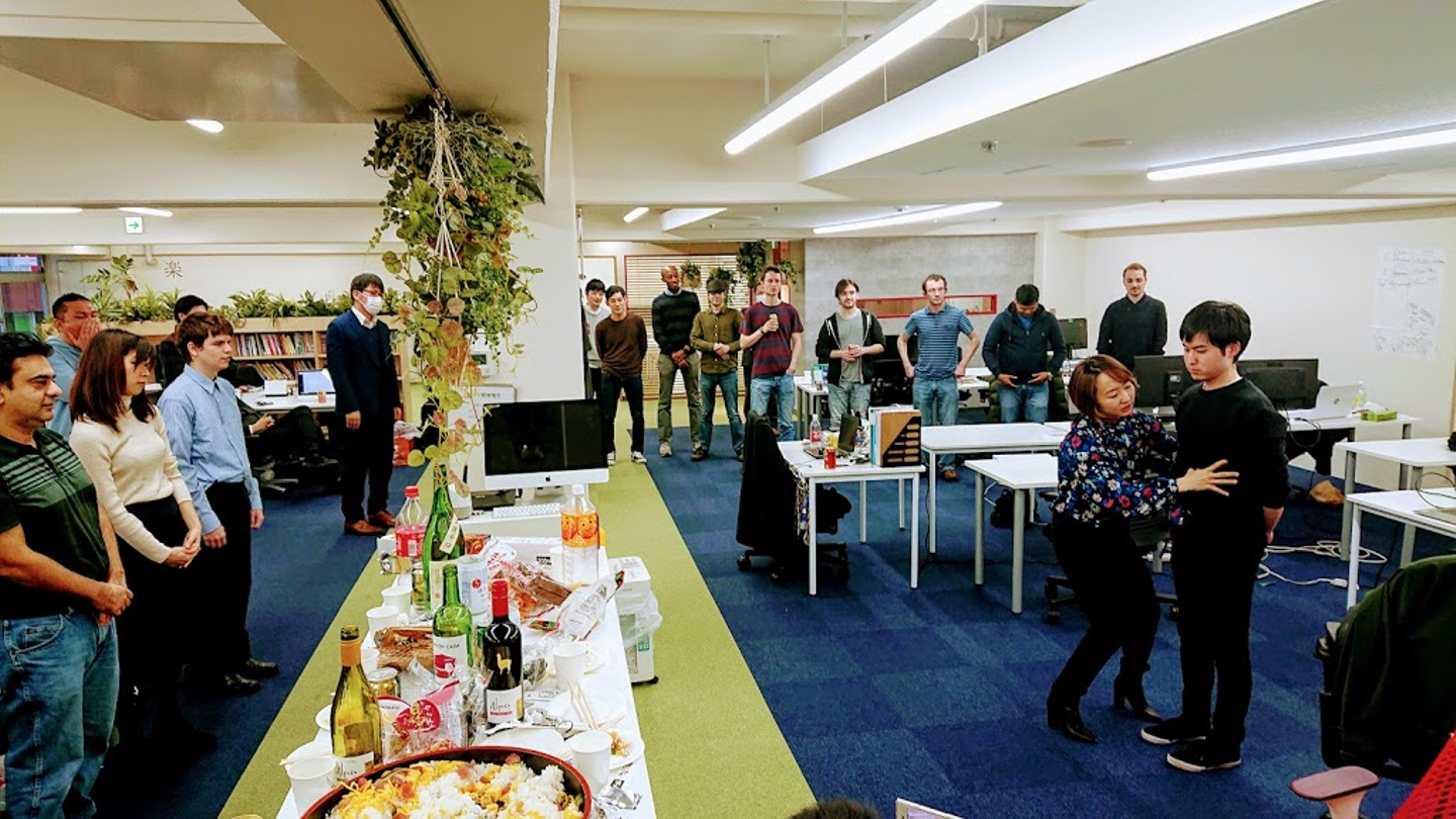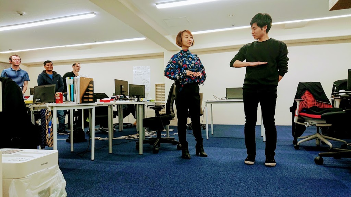 恒例のTGIFの前にストレッチ専門スタジオを運営されている株式会社SSSの前田さんにお越し頂き、仕事の効率を上げるストレッチを実践して頂きました。