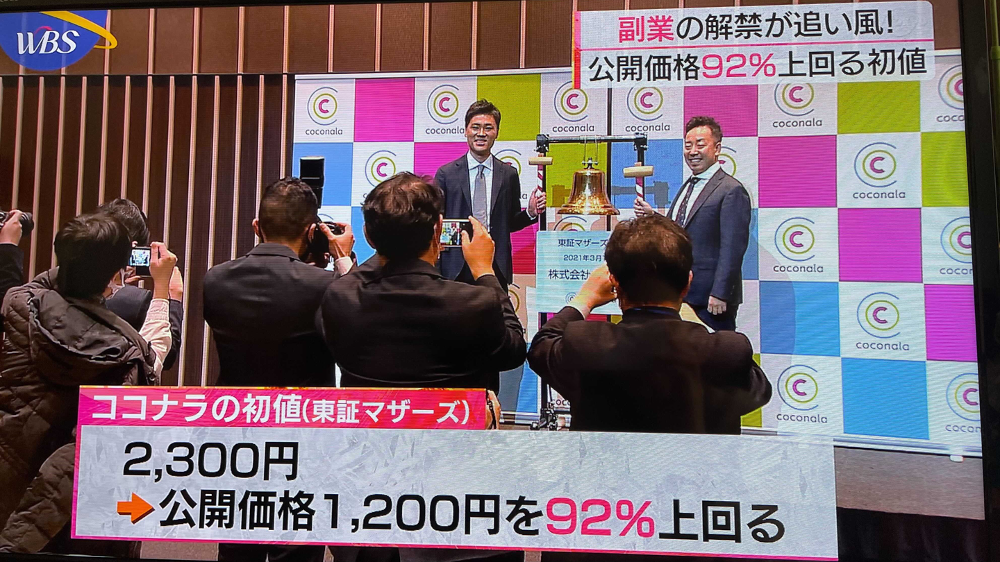 小さなコーナーで扱わっていただく可能性もありましたが、大江アナから単独ニュースとして「ココナラ上場~」を読み上げていただけた瞬間は涙が出そうになりました(いや、出た笑)!!