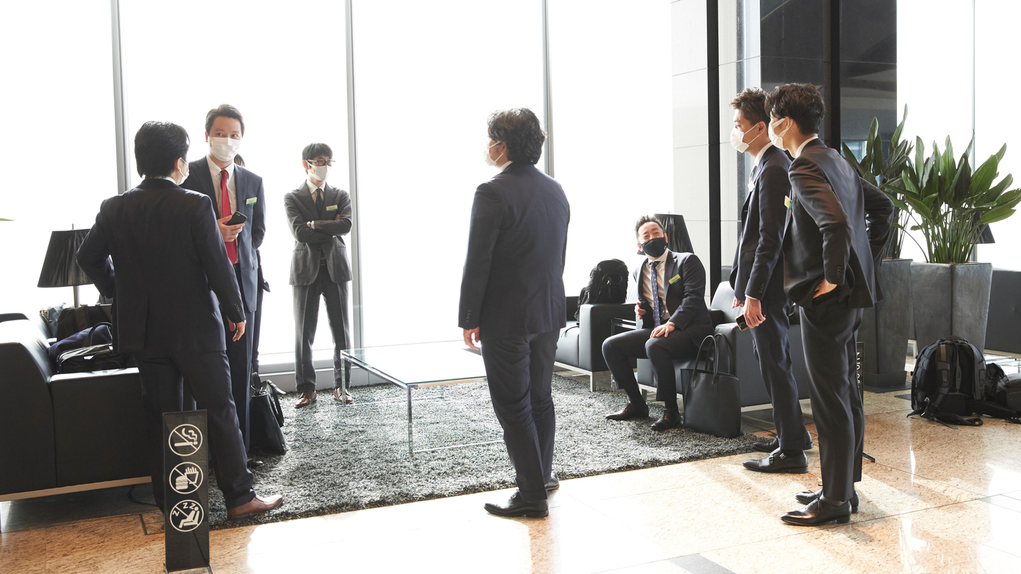 本来は、東証のぐるぐる回る電子版に「祝・株式会社ココナラ 上場」と掲載された文字を見て、皆で喜びを分かち合うのが習わしですが、鈴木ひとりで電子版を見つめている背中に、哀愁を感じ、コロナ禍の上場のシンボリックな場面になりました。