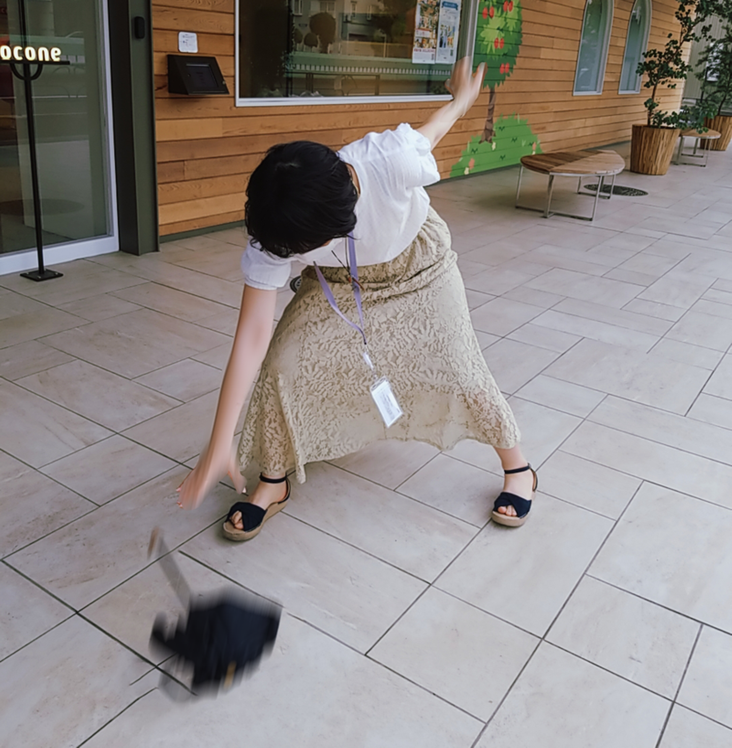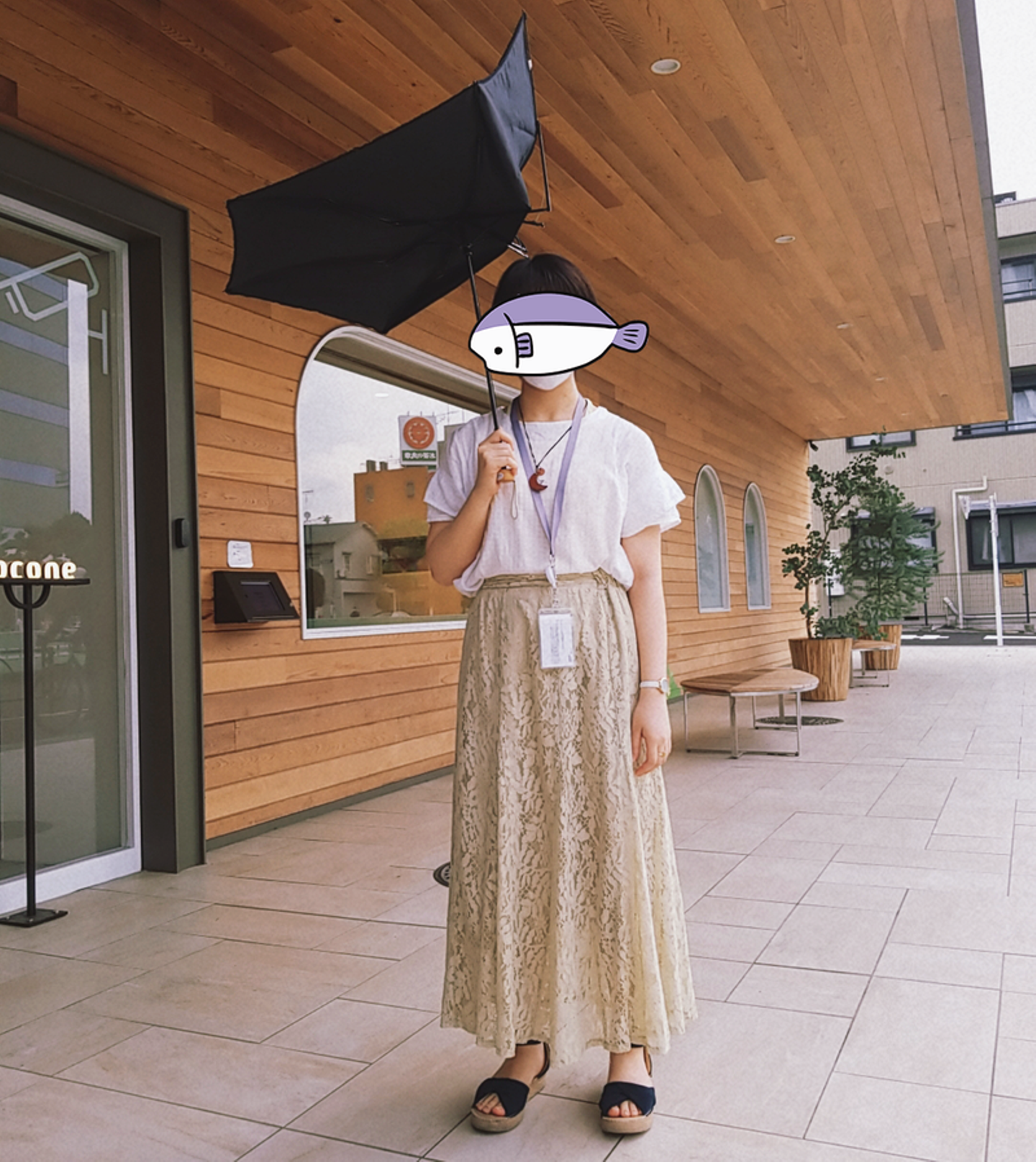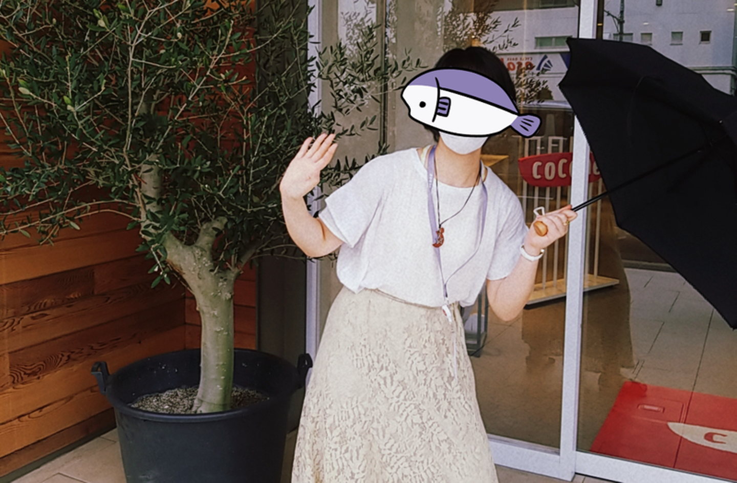 最後にお世話になったココネの玄関と傘と一緒に。