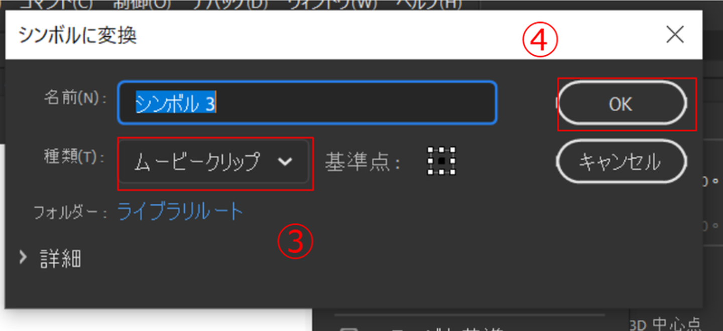 ③好きな名前を入力し、種類は「ムービークリップ」に設定