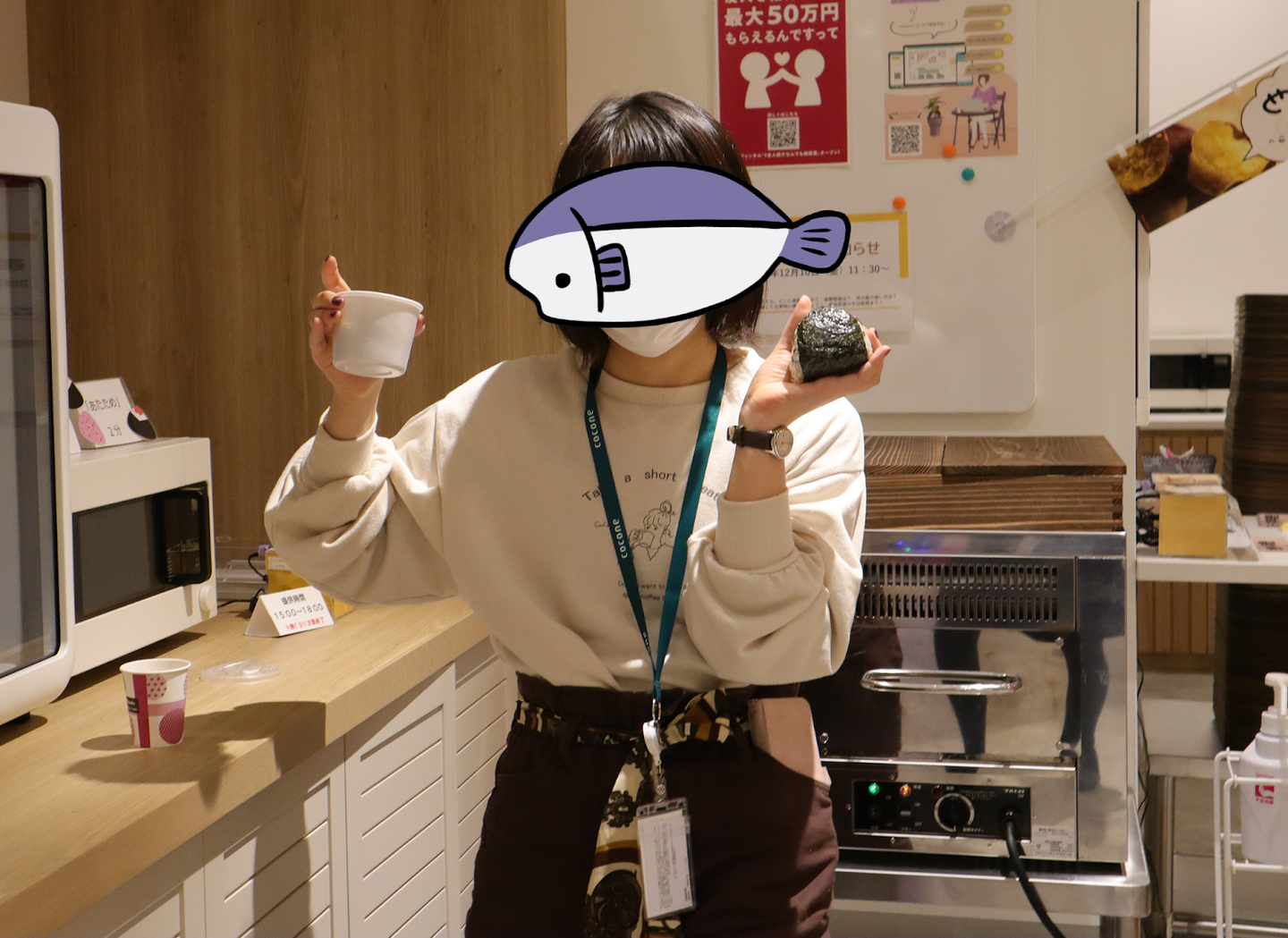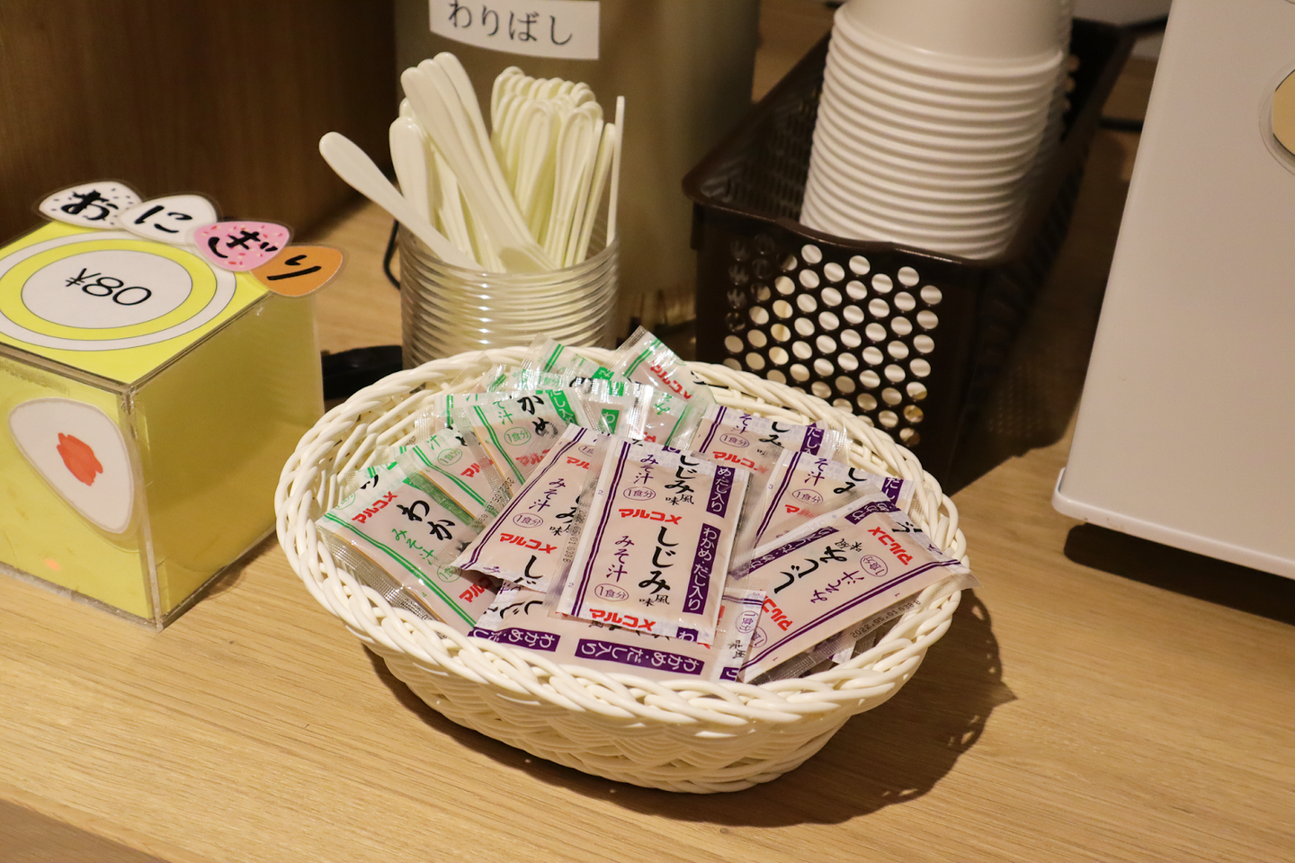 しかも傍らにはお味噌汁が設置されており、おにぎりとセットで購入することができます!