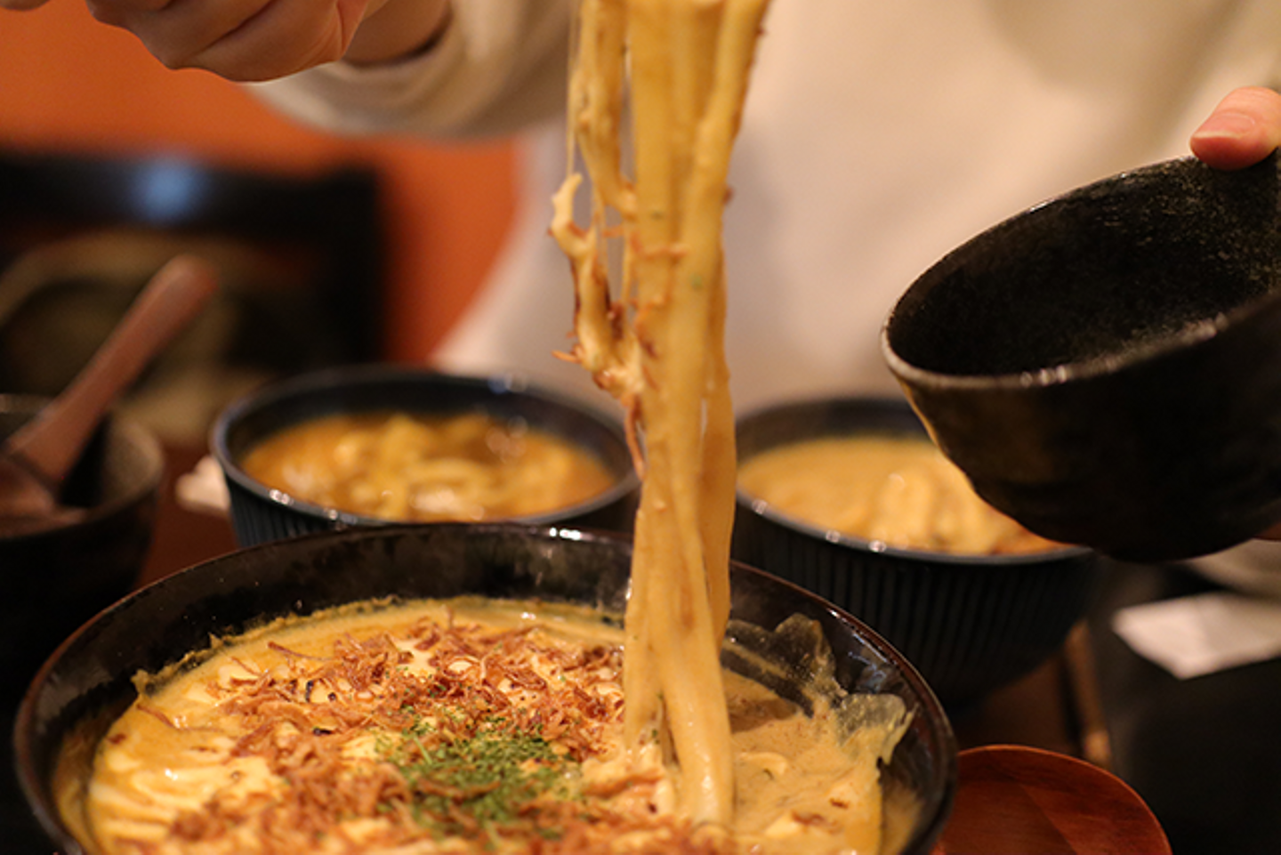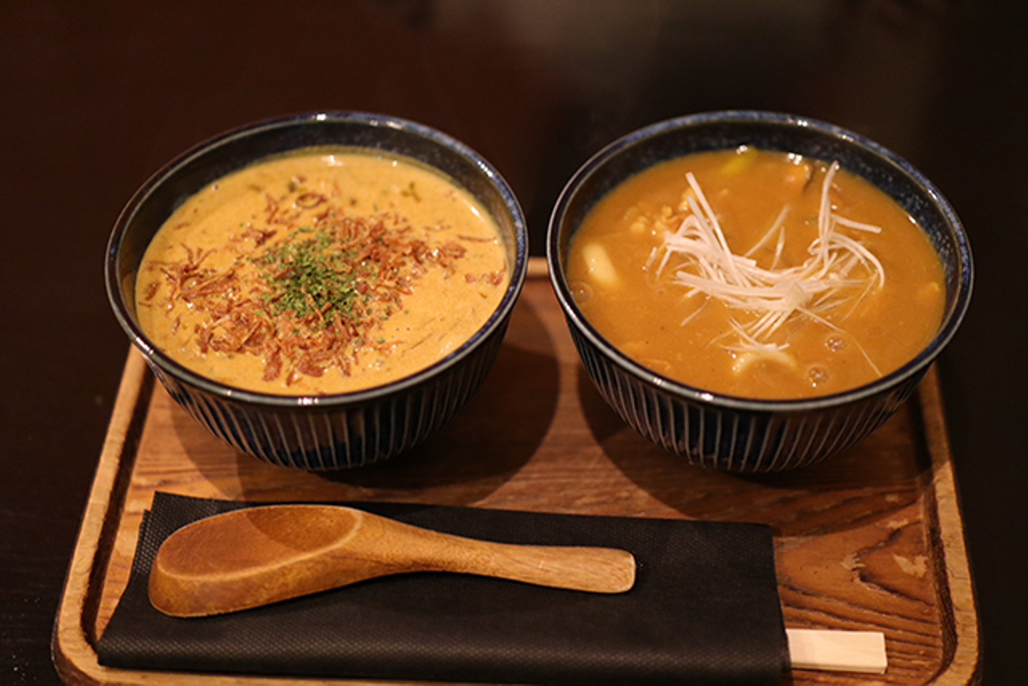 和風の方は出汁のきいたピリリと辛いカレーともちもちつるつるのうどんがあいまって、