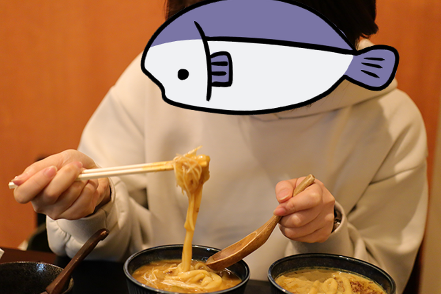 おいしそうなカレーうどんを前に、私も大興奮です。