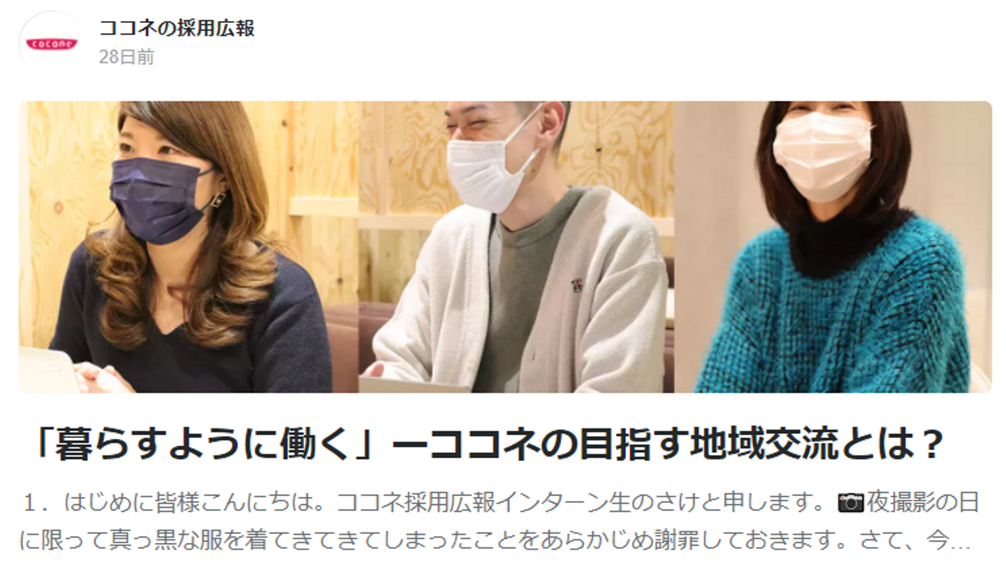 (※ココネの総務チームにインタビューを行い、ココネの地域交流についてまじめにまとめた記事。