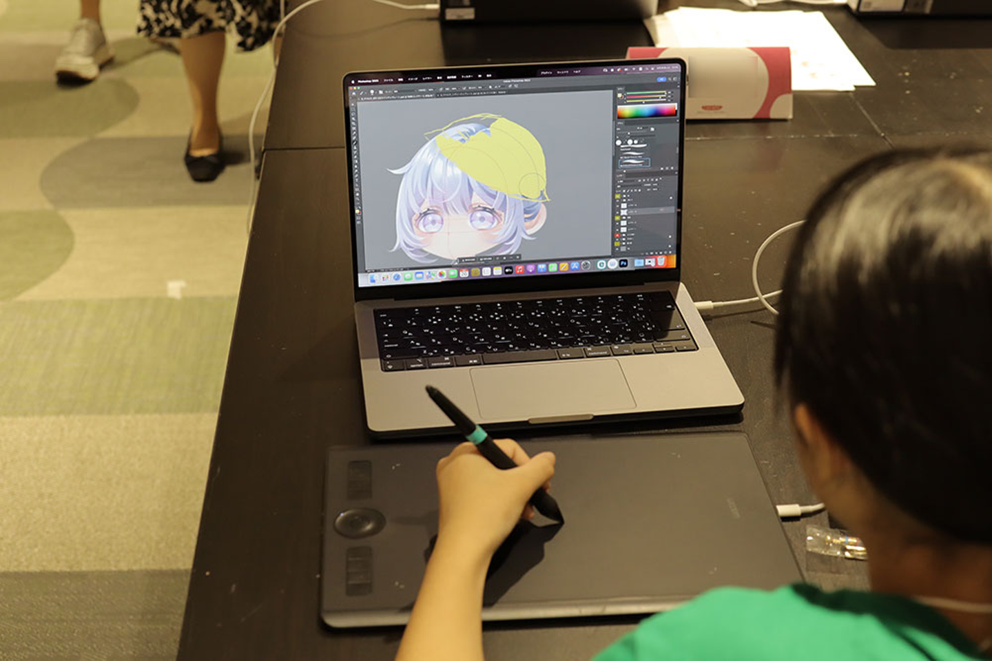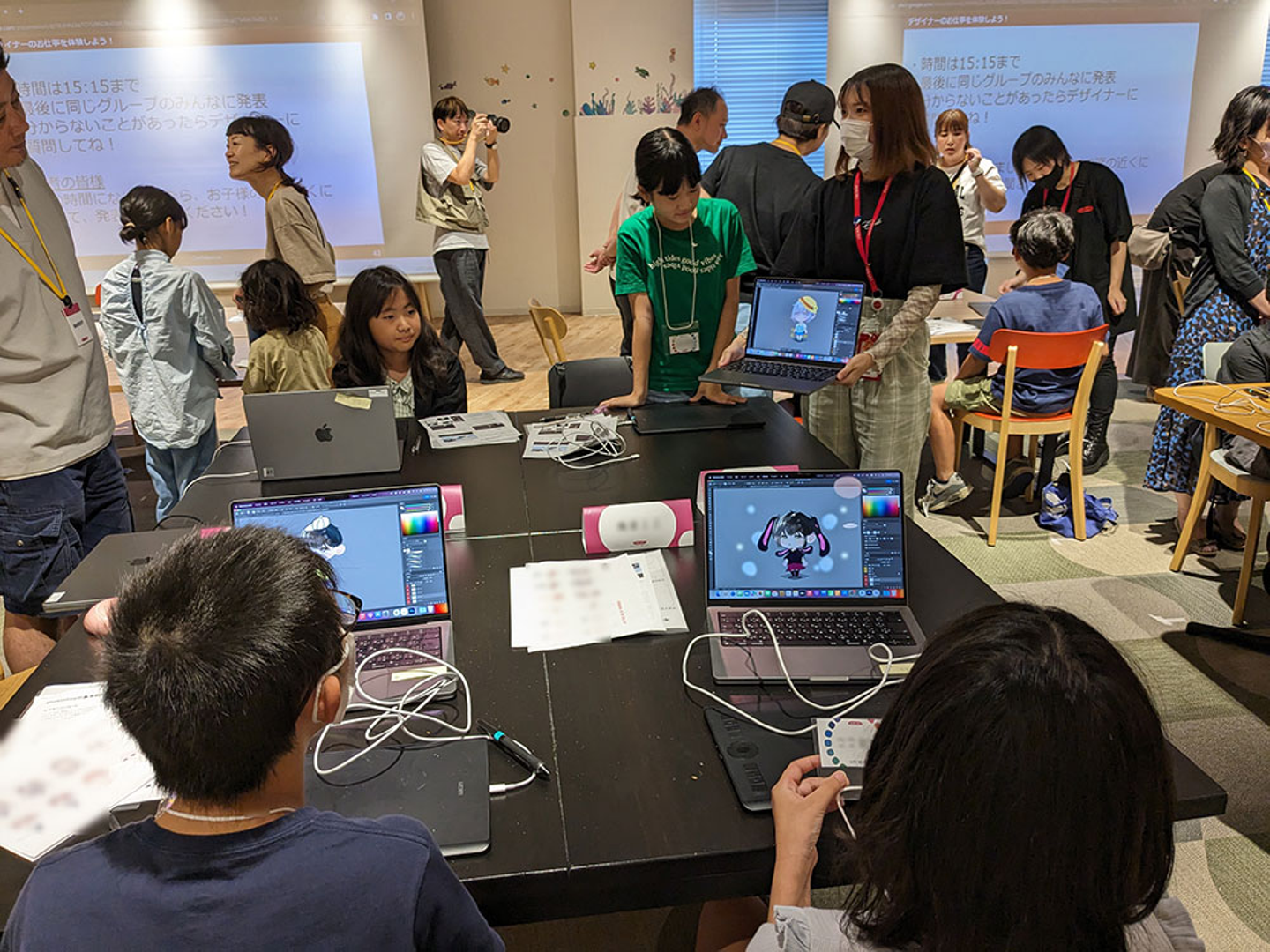 ペンタブレットやPhotoshopを使ったことがない子どもたちがほとんどで、最初は戸惑う様子も見られましたが、すぐにツールを使いこなし、デザイナーたちを驚かせていました。