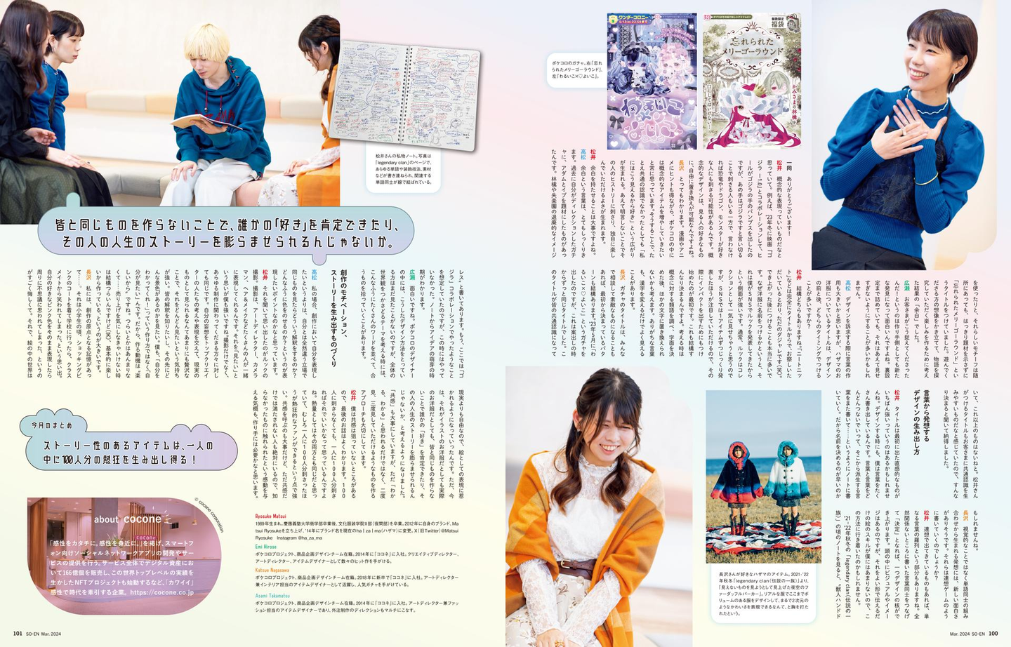 仮想空間で過ごすための「アバター」への注目度がぐっと高まっている今。その中で、アバターを取り巻く仕事は、新時代の職業として熱視線を浴びています。ポケコロシリーズで有名なココネさんとともに、アバターデザイナーの仕事を知る連載。その最終回は、ゲストにha | za | ma(ハザマ)のデザイナー、松井諒祐さんをお迎えし、ポケコロのデザイナー陣とともに「ストーリーのあるアイテムの作り方、伝え方」をディスカッション! クリエイターとして共鳴する部分も多い両者のお話をたっぷりお楽しみください。