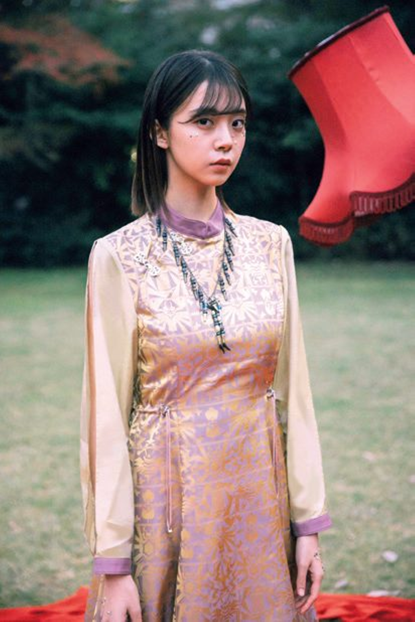 広瀬さんが印象に残っているハザマのアイテムは、2021-’22年秋冬「legendary clan(伝説の一族)」より、「虚空を紡ぎ、織り成す物語のワンピース」。エレガントなワンピースの柄のモチーフが、図案化された虫のモチーフだったという意外性に驚いたそう。