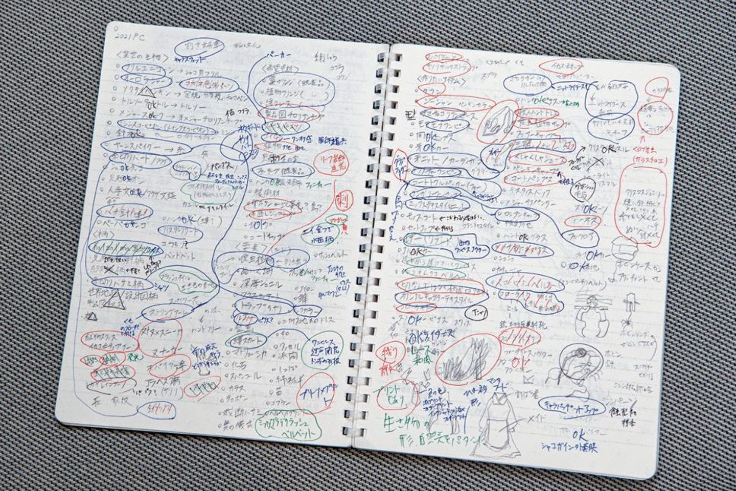 松井 タイトルは最初に出た直感的なものがいちばん強いっていうのはあるかもしれませんね。デザインする時にも、僕は言葉をたくさん書き出しているんです。言葉と言葉をどんどんつないでいって、そこから派生する言葉をまた書いて……というようにノートに書いていく。だから名前を決めるのが早いのかもしれませんね。