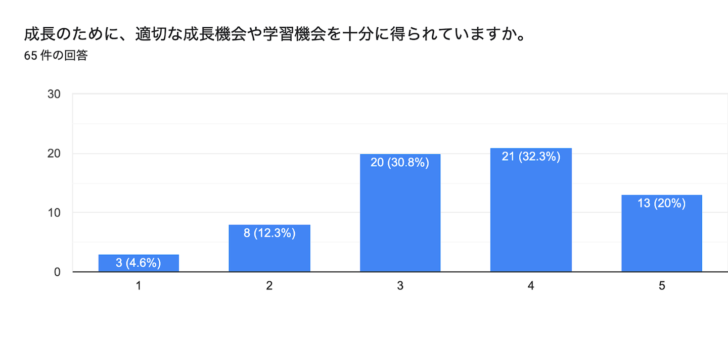 活用状況については、伸びしろがたくさんある状態です。最近、従業員向けアンケートを実施したのですが、学習機会について下記のようなフィードバックをもらいました。