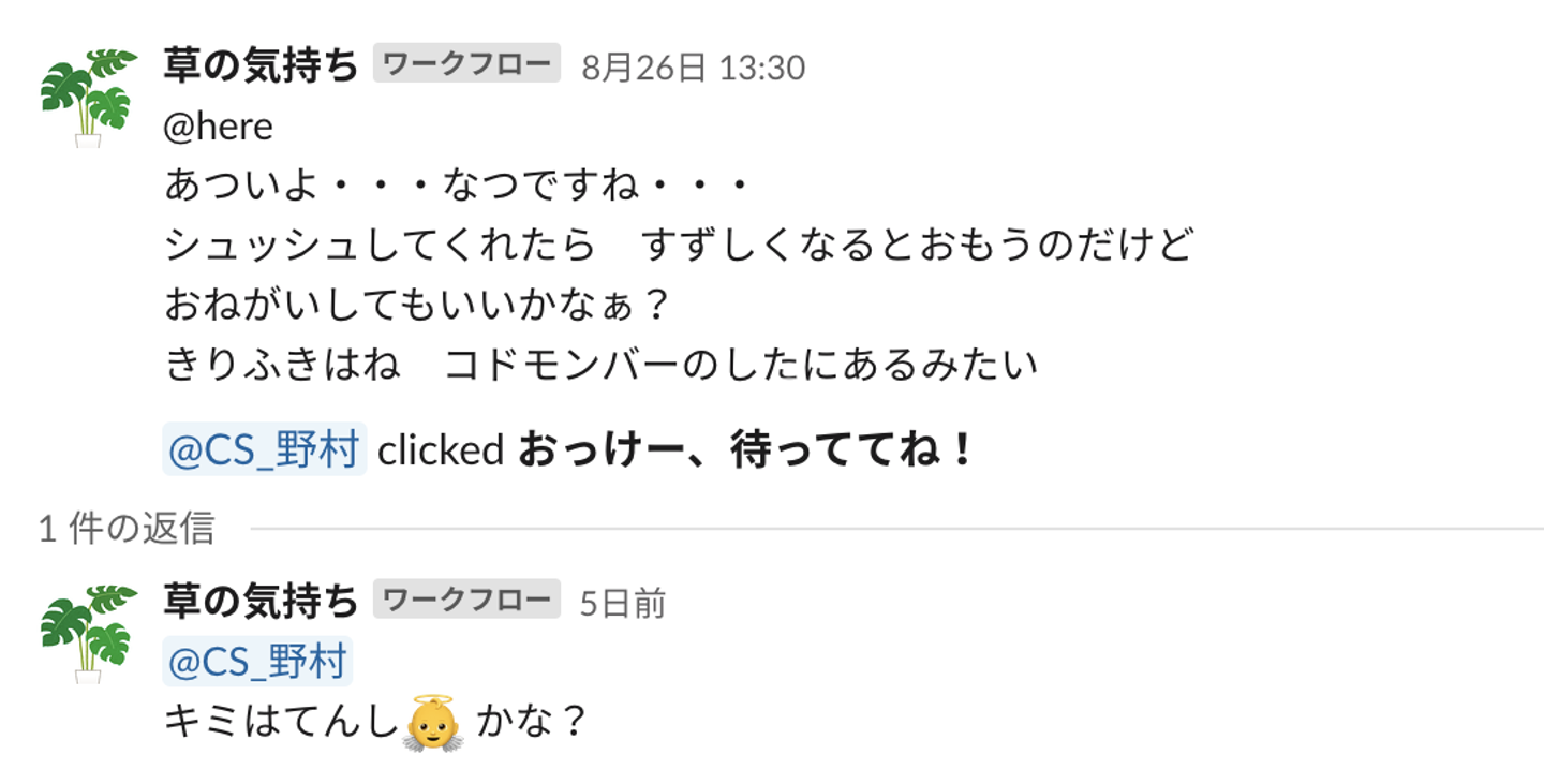 Slackのリマインダーで「葉っぱに水をあげてね!」っていうメンションがくるじゃないですか。