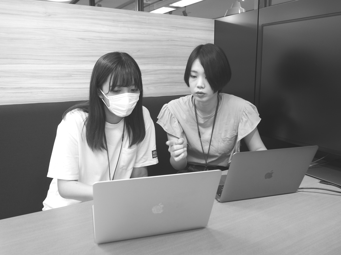 (上) そういえば目標とは少しずれちゃうのですが……。週1で実施している新卒ミーティングで、それぞれが指標を見失わないようにちゃんと議題を持たせようってことになったんですよ。今まではその週にあったことや感情を共有する場だったんですけど、これからは1つのテーマを決めてそれについて話し合う会にしようってことになりました!