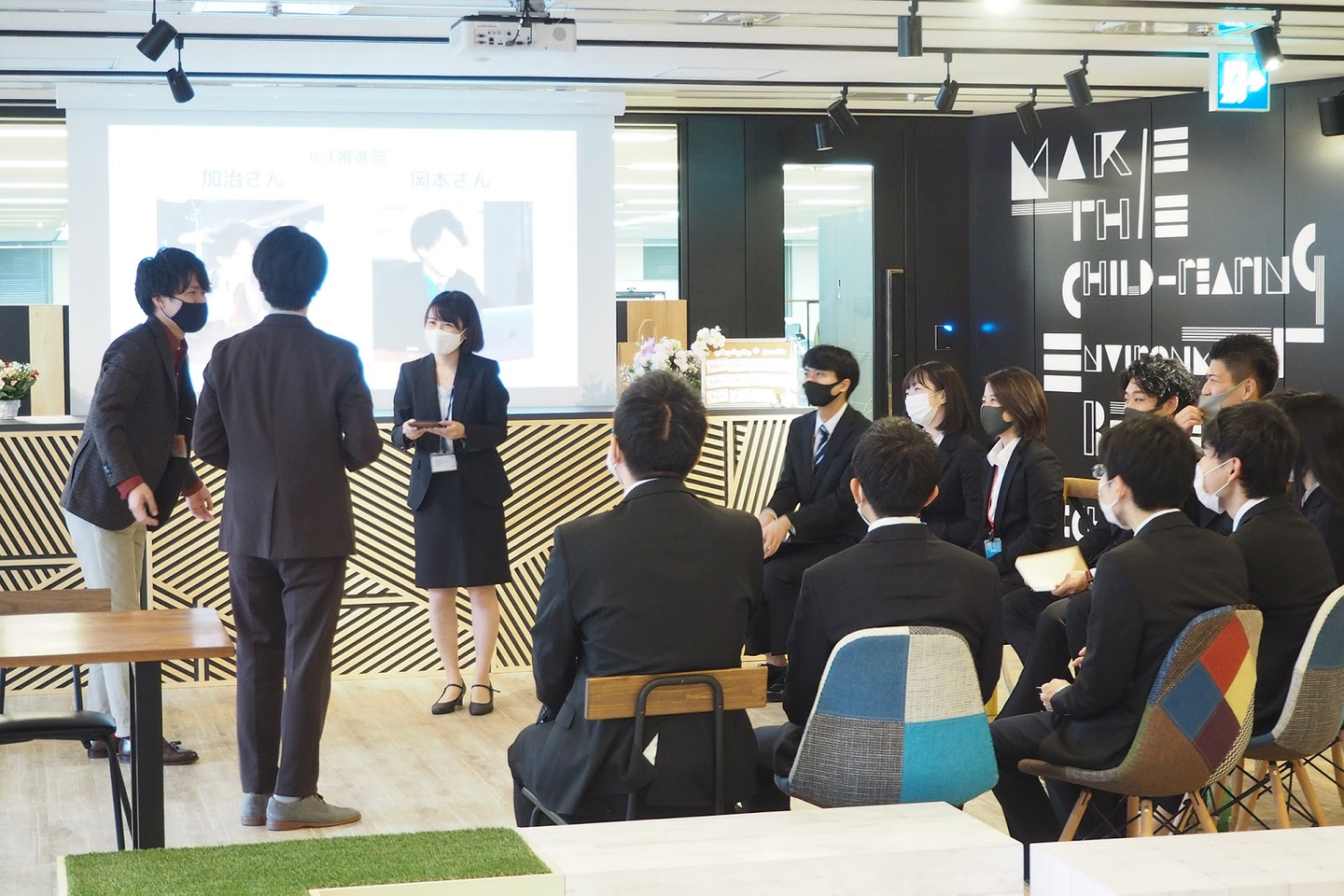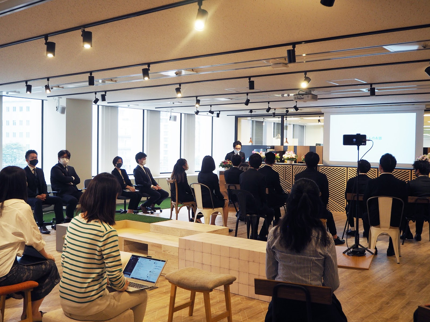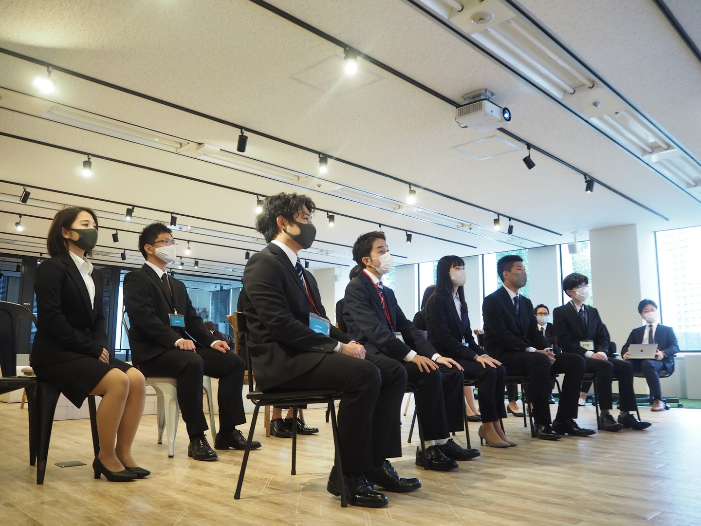 1期目となる昨年は4名の新卒を迎えましたが、今年は約3倍の11名に入社を決めていただきました。普段はカジュアルな服装のメンバーも、この日はビシッとスーツで出社。