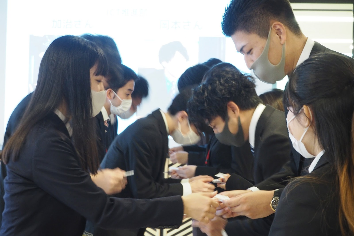 内定式終了後は休憩をはさみ、内定者同士の交流を深めるために名刺交換会とワークショップを実施しました。