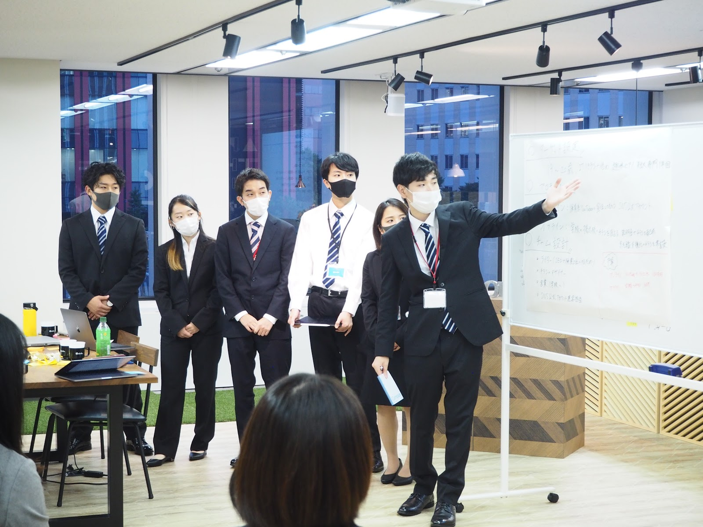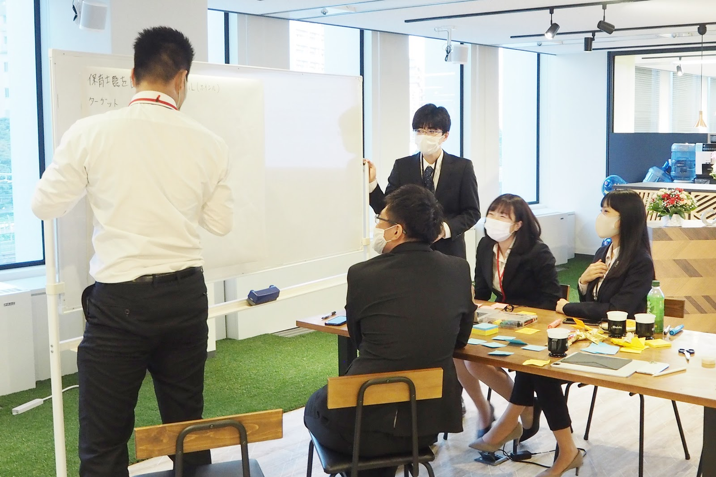 役割分担やブレストなど工夫をしながら、難しいお題にチームみんなで一致団結して取り組み、できあがったマーケティング戦略を代表 小池の前でプレゼン。緊張しつつも、チームで練った案を分かりやすく話す様子に、頼もしさを感じました。