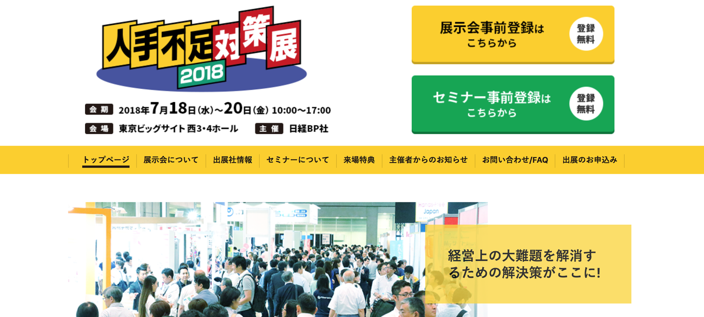 2018.7.18(WED)−2018.7.20(FRI)「人手不足対策展2018」@東京ビッグサイト