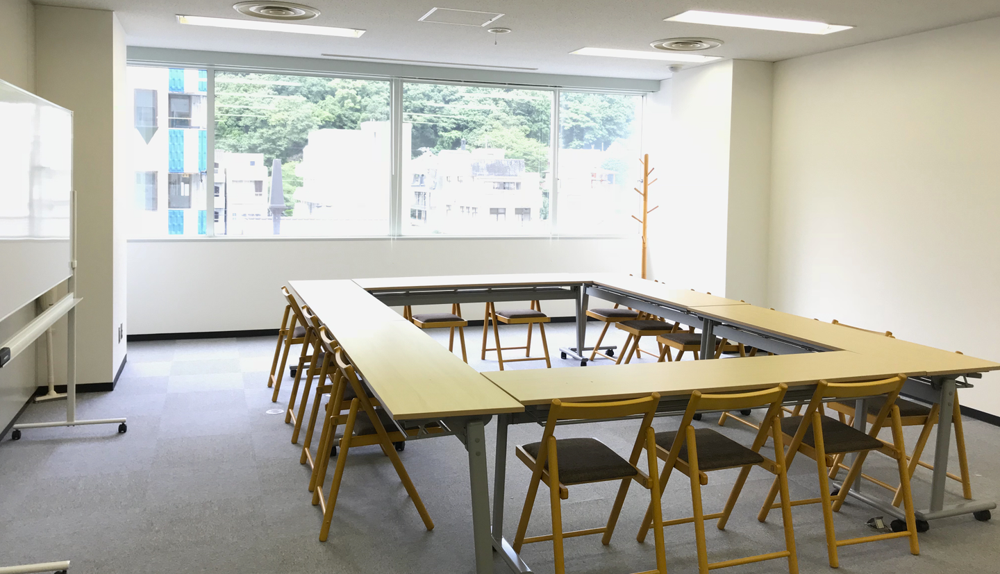 現在は1フロアに椅子・テーブル・ホワイトボードとシンプルな設備のみとなりますが、徐々に必要なものは補充していく予定です^^