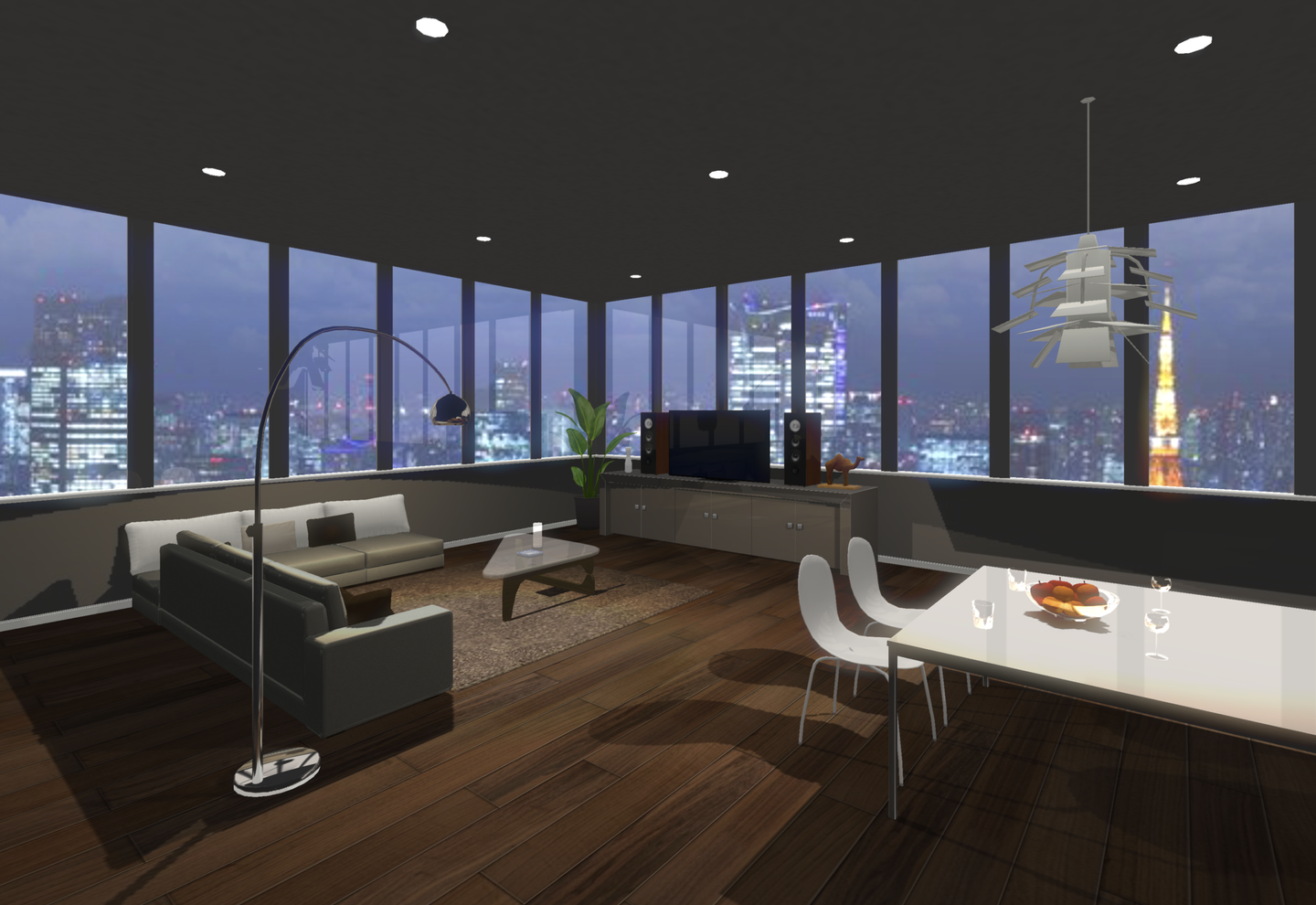 不動産のチラシでキラキラした静止画CGを目にすることがあるかと思いますが、あれは静止画だから実現できる品質です。ブラウザでこれを実現するには、静止画よりCG品質は妥協しながらも操作性やユーザビリティをギリギリまで追求したエンジンが必要です。色々な施策を検証した結果、既存の3Dエンジンでは実現が難しいという結論になり、自社製エンジンを開発することになりました。