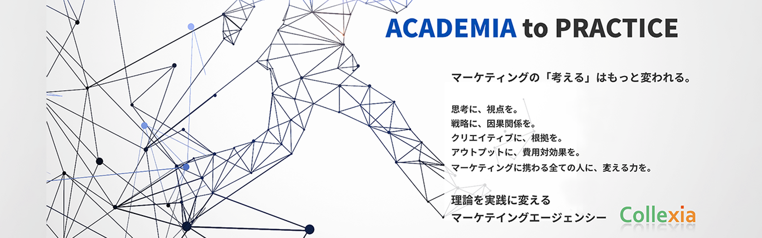 コレクシアは、高度な分析力とアウトプット力が強みのマーケティングエージェンシーです。数学、統計学、文化人類学、心理学、AI、医療、教育など幅広い分野の理論や手法を研究してビジネスに応用する、「知的生産の加工貿易」を生業としています。我々にとって分析とは、データから情報という「価値」を創り出し、クライアントがその情報を利用して「更に大きな価値」を作るという、データのバリューチェーンを生み出す事です。その為に、”分析の先にあるビジネス”を見据えた視点で事業を展開しています。