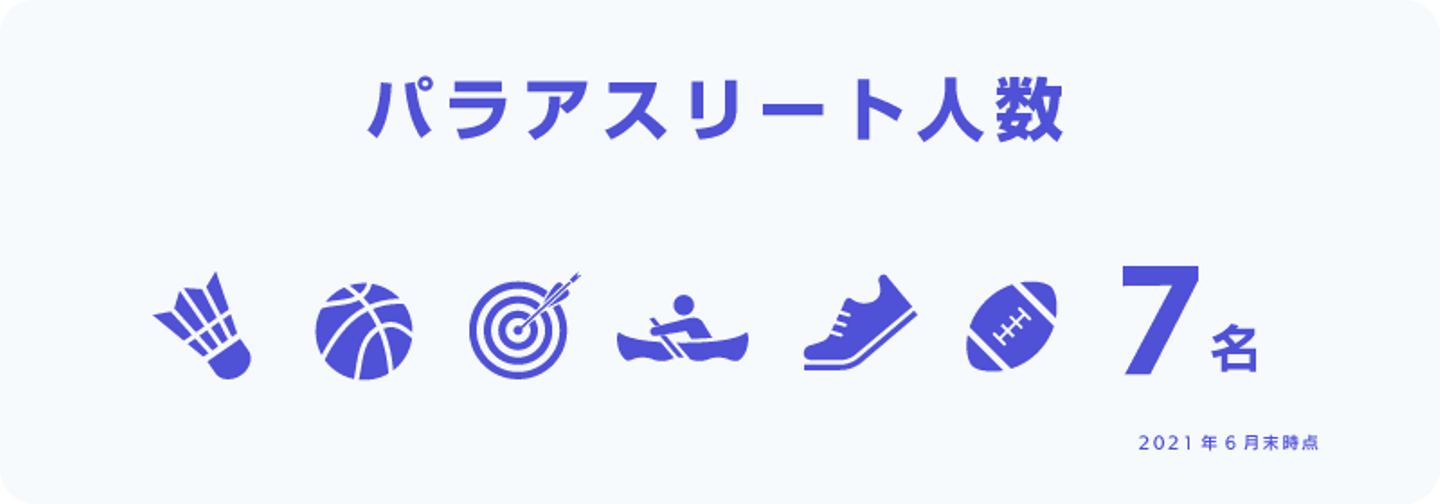 コロプラでは人々を楽しませ、その心を動かすスポーツもエンターテインメントそのものであると考え、2018年からトップアスリート支援として、パラアスリート採用を開始しました。2021年6月末時点で、6競技(車いすバスケットボール/パラバドミントン/パラアーチェリー/パラカヌー/ブラインドマラソン/車いすラグビー)・計7名の選手が所属しています。