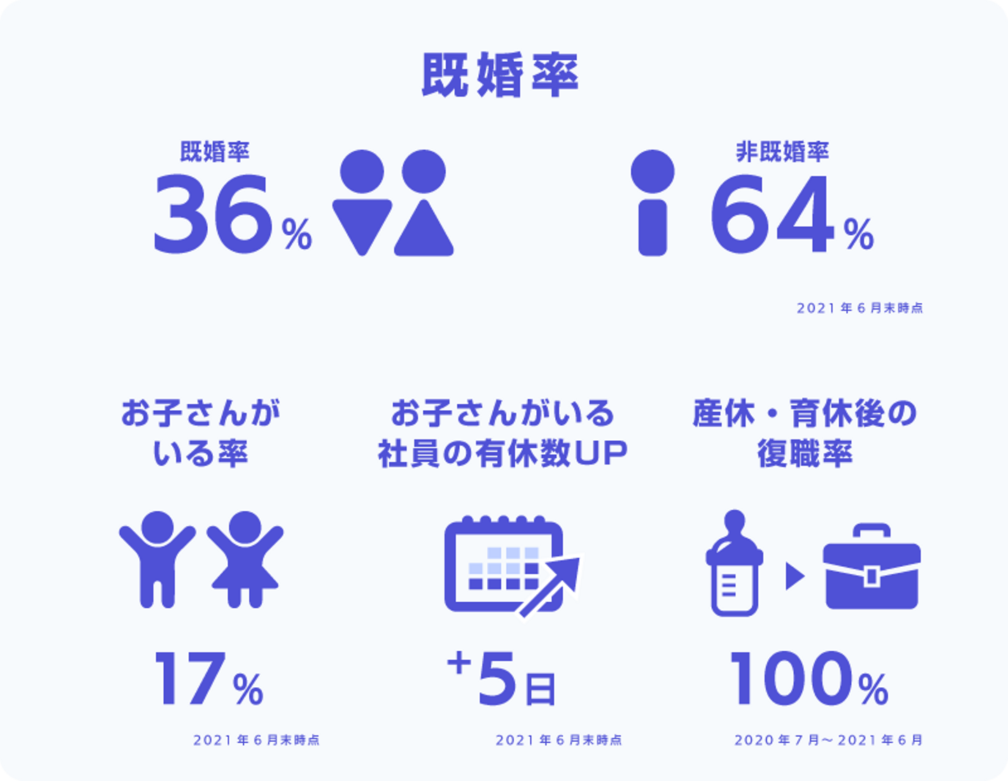 全社員の有給取得率は68.0%です。また労働基準法に則り、年10日以上の年次有給休暇が付与される従業員は例外なく有給を5日以上取得しています。