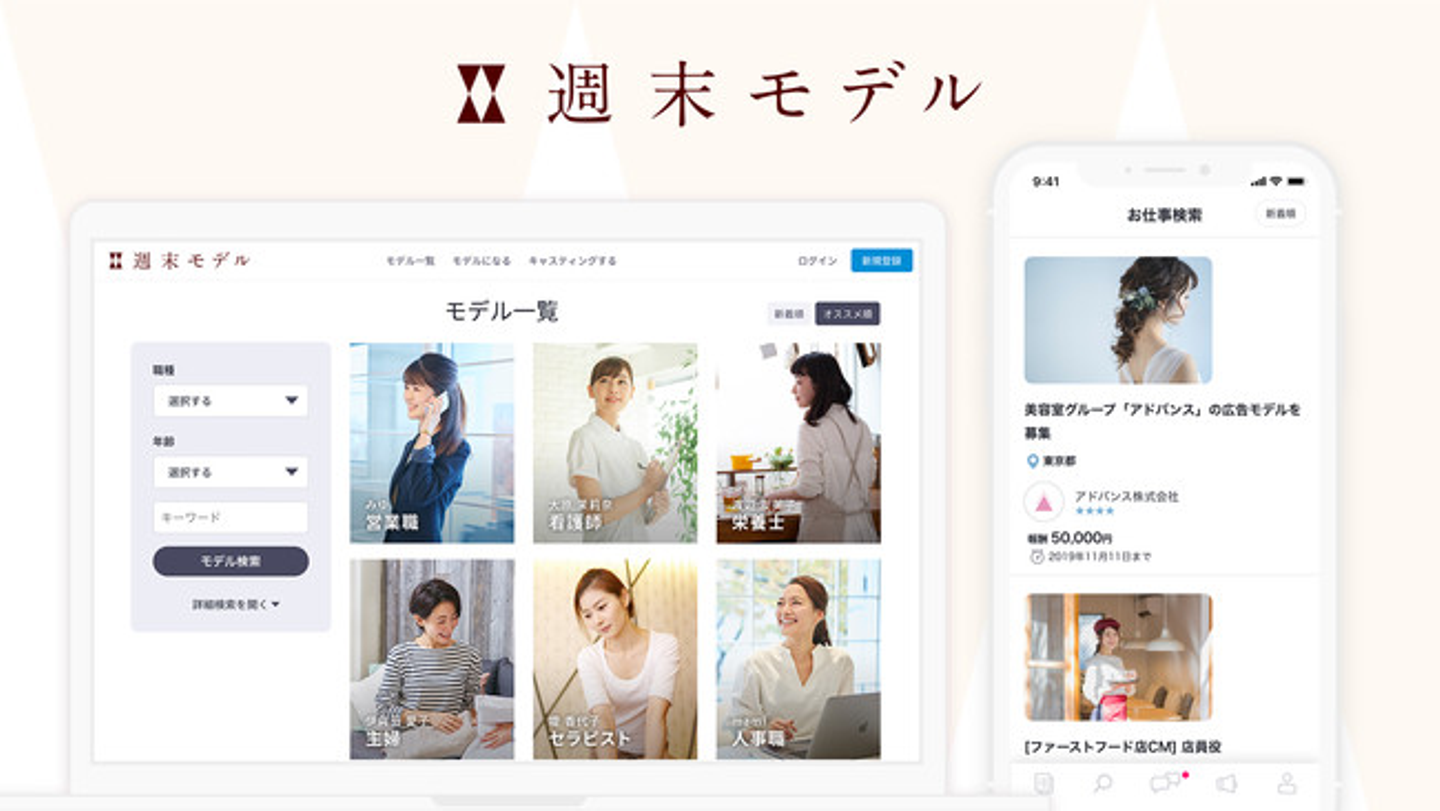 私らしく働く自由をコンセプトにした、女性の複業支援プラットフォームです。会社員、看護師、主婦などの職を持ちながら、モデル活動をはじめとした複業に取り組みたい女性と、そんなリアルで魅力的な女性をキャスティングしたい企業をアプリ・ウェブ上でマッチングします。モデルは、20代~30代の女性を中心に5,000名以上が登録。登録企業は、広告代理店、アパレル、美容系企業など約1,300社です。