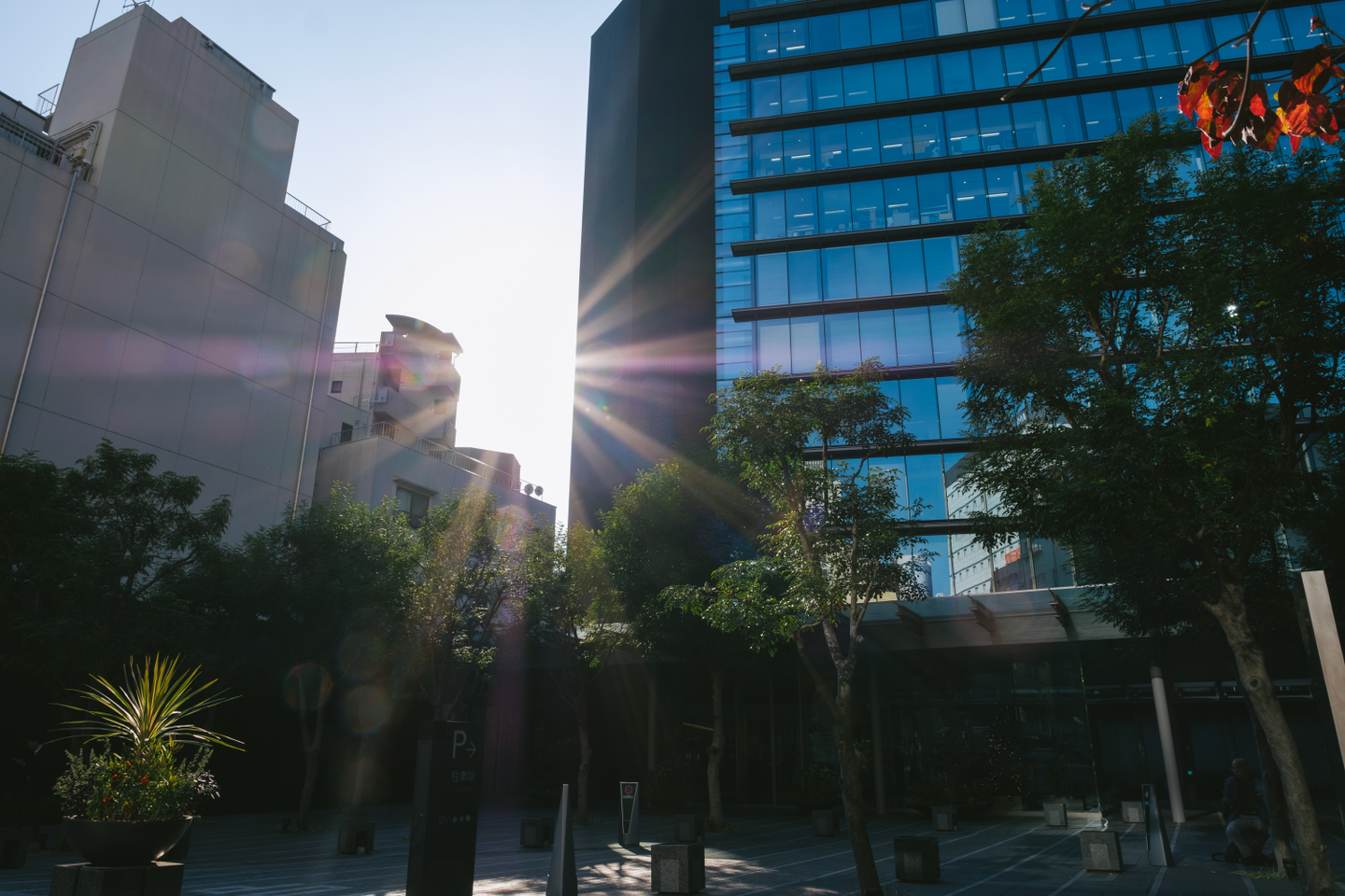 (逆光が眩しい写真ですが、大きな窓のおかげでビルの採光はバッチリです。)