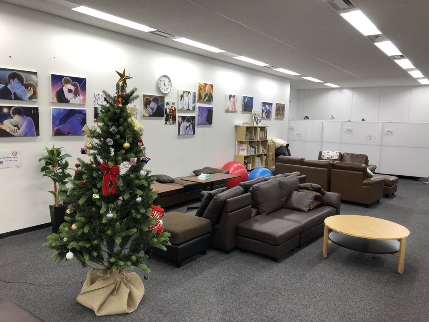 こちらは「憩いの場」と呼ばれる休憩スペースです。(現在はクリスマス仕様になっています。)