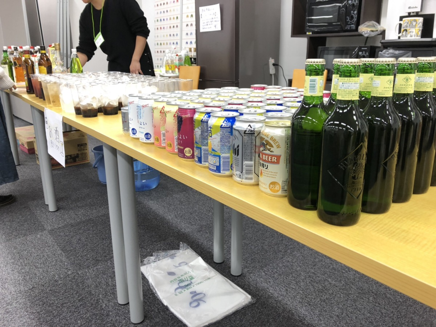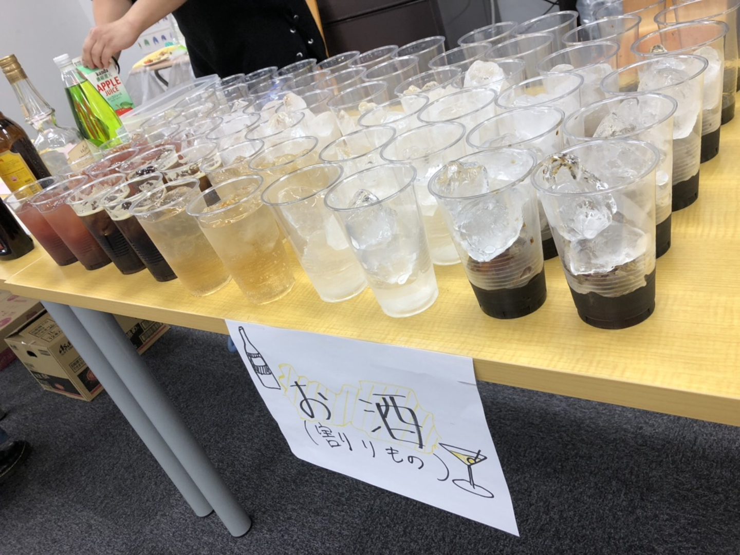 社内に即席のバーカウンターを設置してドリンクを提供しました。